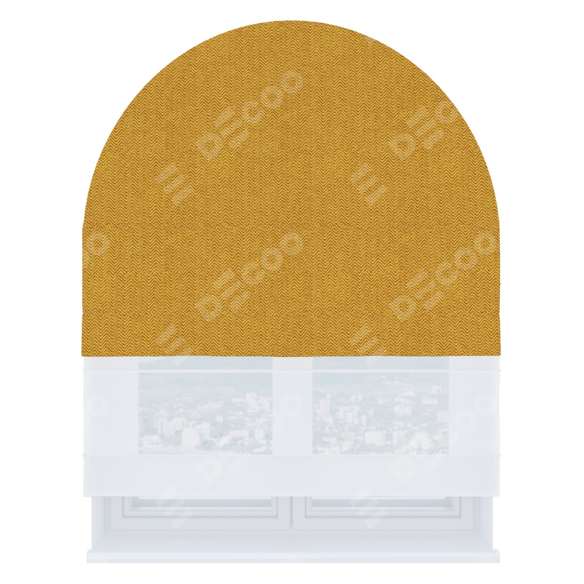 Римская штора день-ночь производителя «Cortin», используется для арочного проёма, пошита из двух полотен, с лицевой стороны твид блэкаут медово-желтый артикул 21641, вторая ткань тюль (по стандарту комплектуется тюль белого цвета артикул V-01). Штора шьётся по индивидуальным размерам, для данного типа римской шторы возможная ширина от 60 до 300 см. Удобное управление каждой шторой отдельно.