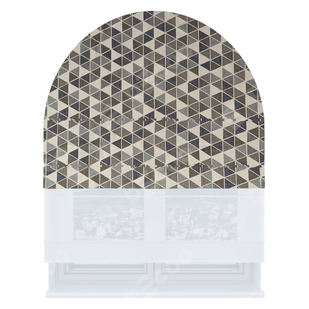 Римская штора «Кортин» день-ночь для арочного проёма, ткань димаут «Треугольники синие»