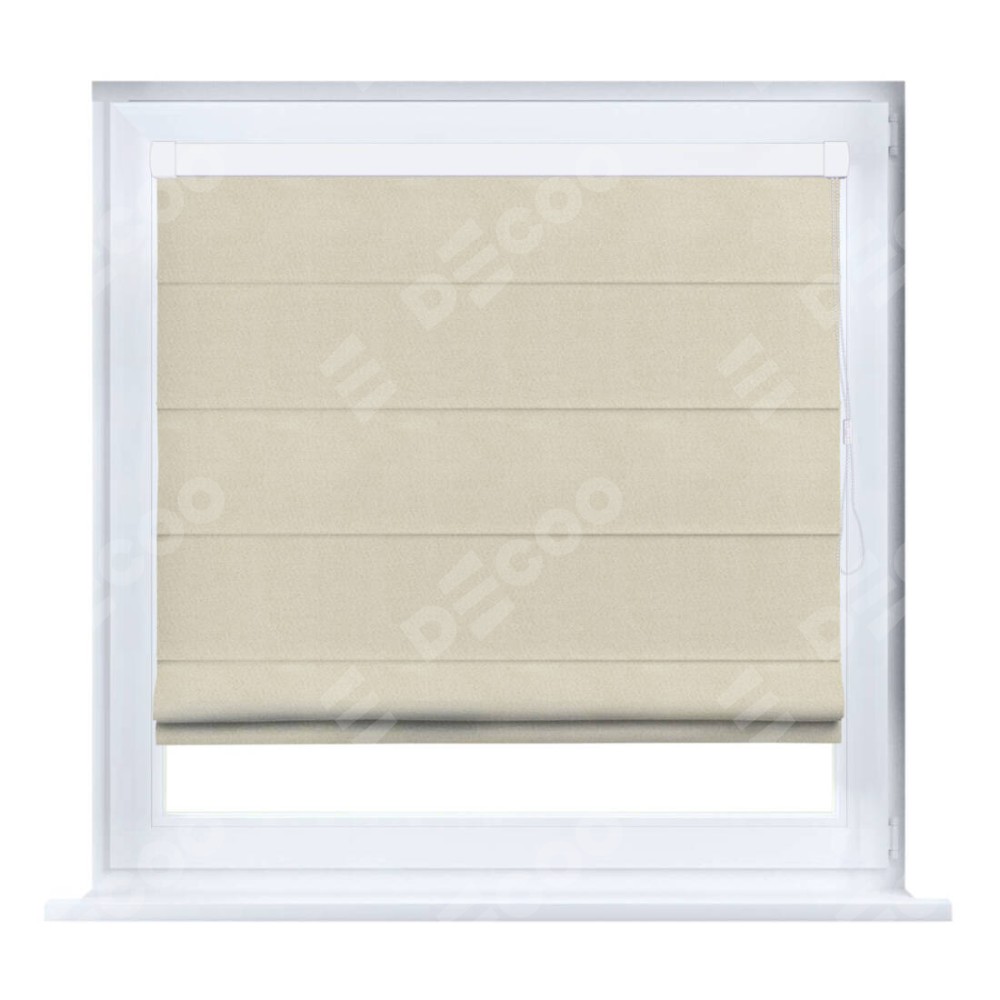 Римская штора производителя «Cortin», устанавливается на створку окна, пошита из ткани блэкаут однотонный бежевый, артикул 13125. Штора шьётся по индивидуальным размерам, для данного типа римской шторы возможная ширина от 35 до 150 см., высота до 250 см.
