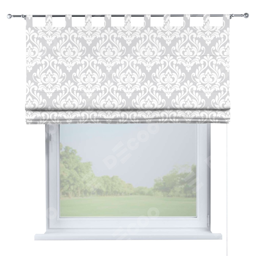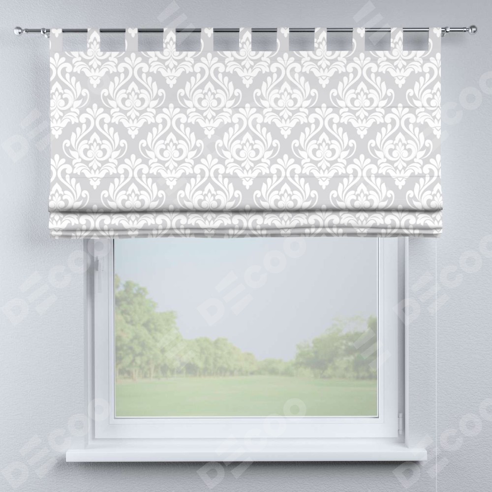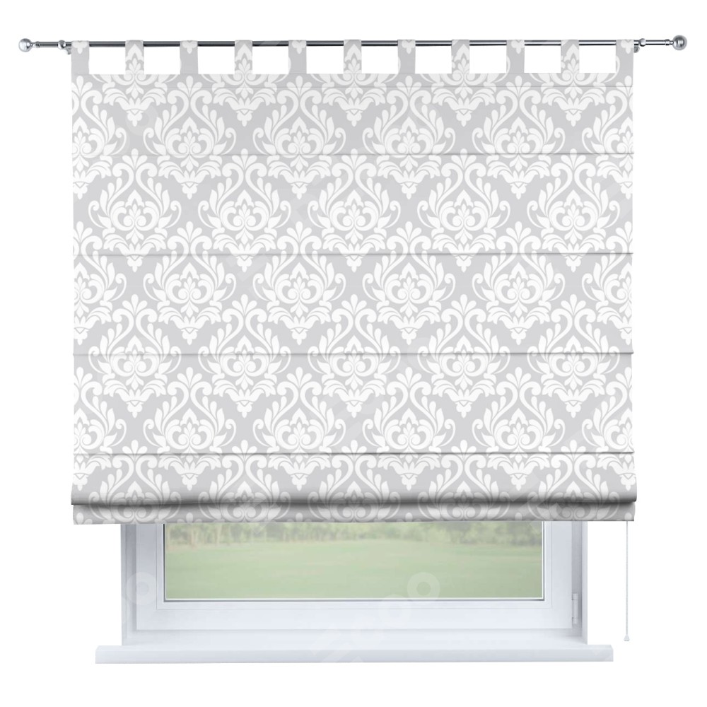 Римская штора производителя «Cortin», используется для проёма, пошита из ткани блэкаут с нанесением сублимационной печати «Дамаск светлый». Данная модель пошита на петлях, комплектуется на выбор круглым карнизом и подходит для монтажа на стену. Римская штора на петлях имеет простую систему регулировки высоты, отличительным преимуществом данной модели является простой способ монтажа. Достаточно повесить ее на трубу и штора готова!