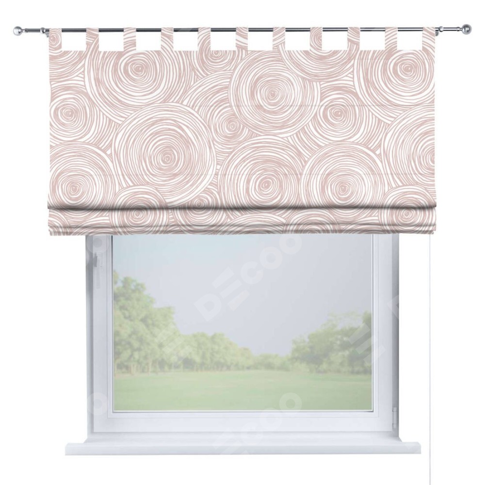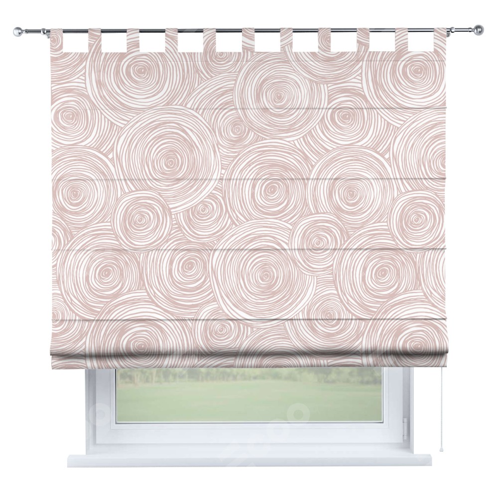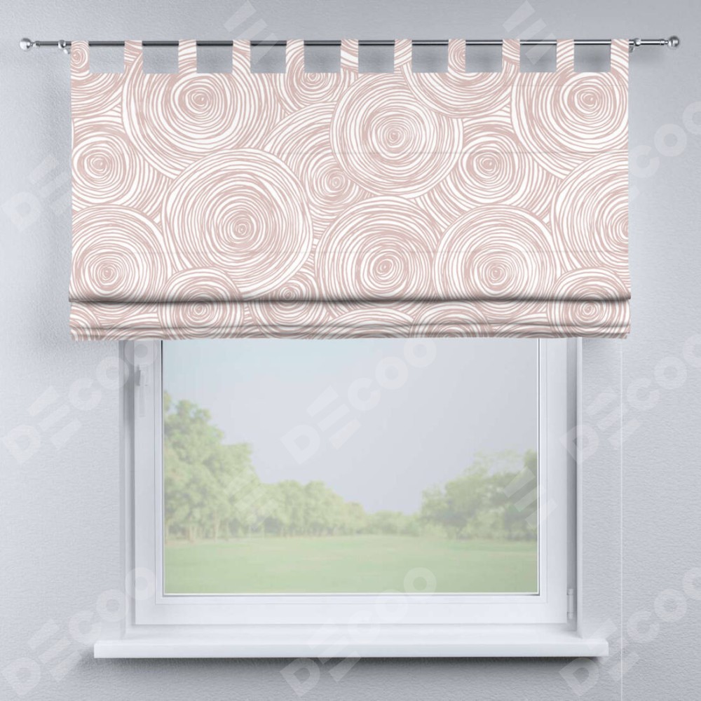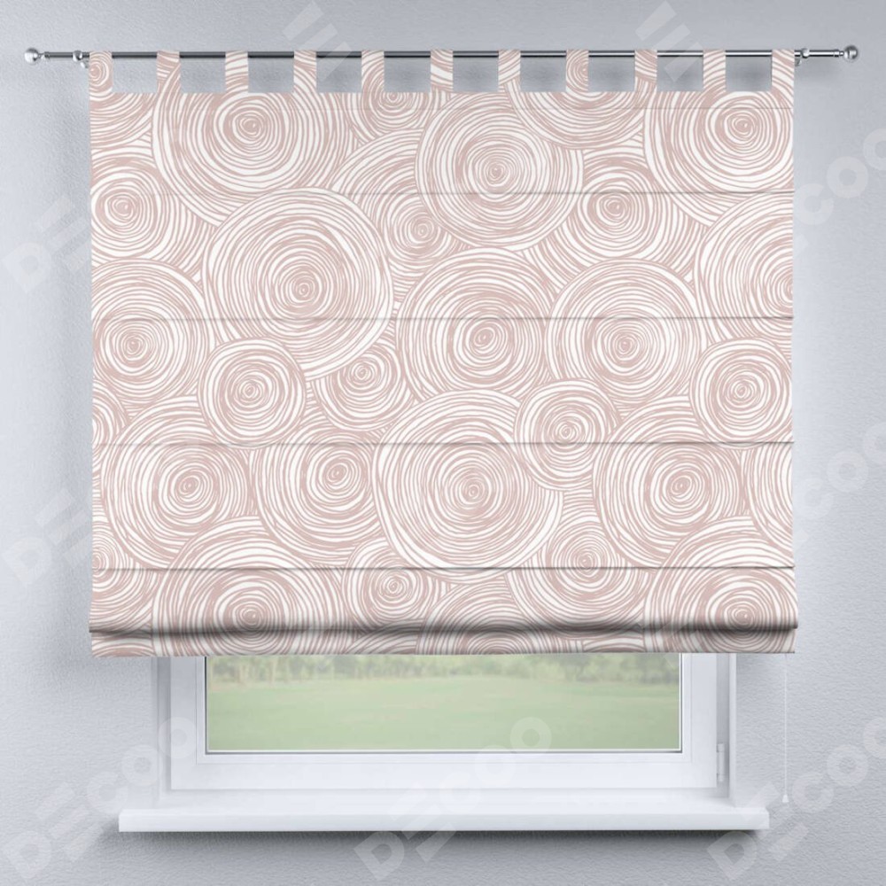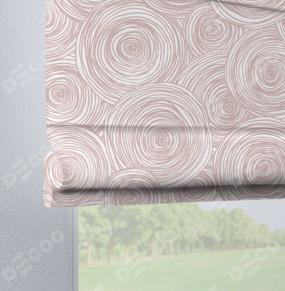 Римская штора производителя «Cortin», используется для проёма, пошита из ткани блэкаут с нанесением сублимационной печати «Бежевые круги». Данная модель пошита на петлях, комплектуется на выбор круглым карнизом и подходит для монтажа на стену. Римская штора на петлях имеет простую систему регулировки высоты, отличительным преимуществом данной модели является простой способ монтажа. Достаточно повесить ее на трубу и штора готова!