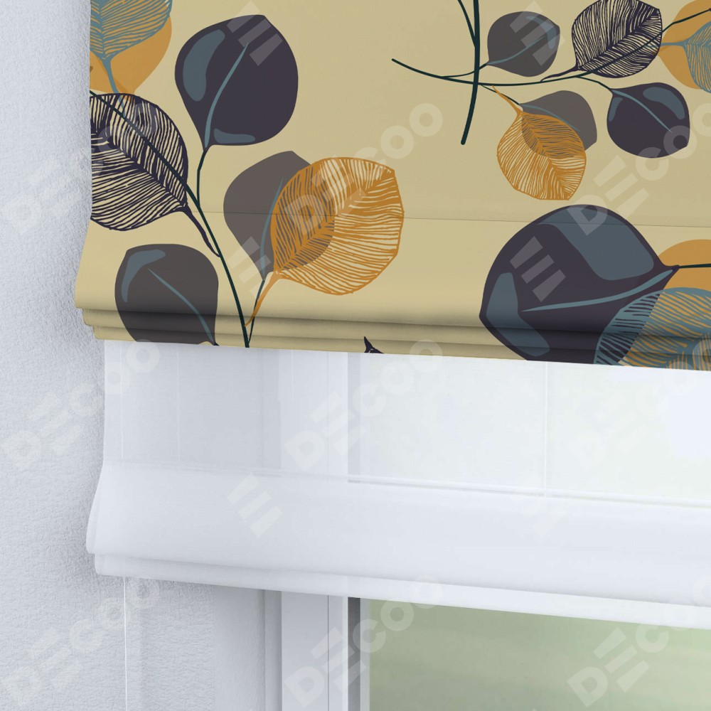 Римская штора «Кортин» день-ночь «Листья в янтаре»