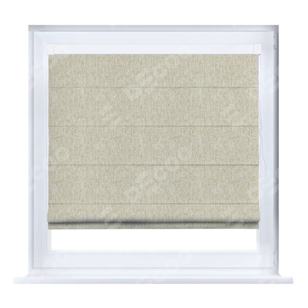Римская штора производителя «Cortin», устанавливается на створку окна, пошита из ткани стиф димаут светло-бежевый, артикул 18084. Штора шьётся по индивидуальным размерам, для данного типа римской шторы возможная ширина от 35 до 150 см., высота до 250 см.