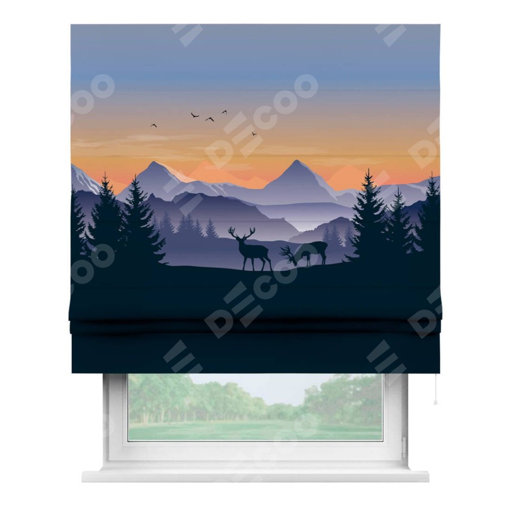 Римская штора «Кортин» для проема «Закат в горах»