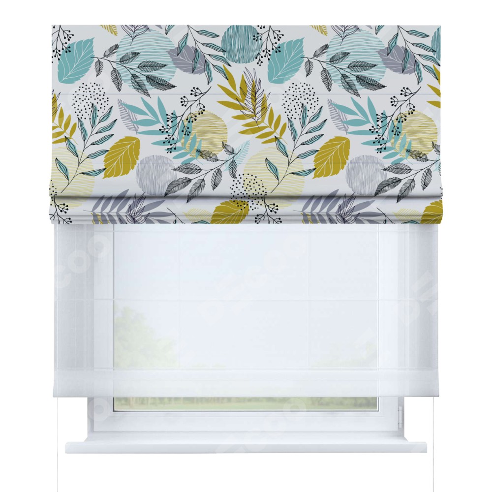 Римская штора день-ночь производителя «Cortin», используется для проёма, пошита из двух полотен, с лицевой блэкаут с нанесением сублимационной печати «Альпийский луг», вторая ткань тюль (по стандарту комплектуется тюль белого цвета артикул V-01). Имеет универсальный механизм и подходит для монтажа: на потолок, на стену и в нишу.