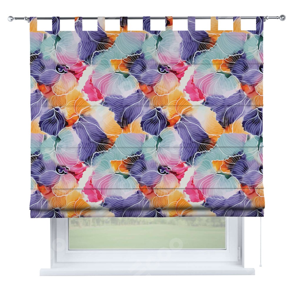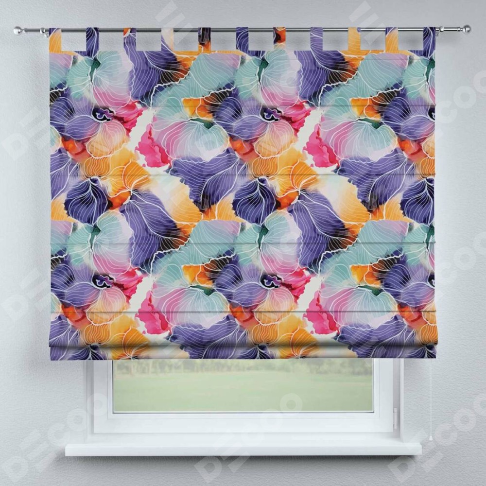 Римская штора производителя «Cortin», используется для проёма, пошита из ткани блэкаут с нанесением сублимационной печати «Роскошные ирисы». Данная модель пошита на петлях, комплектуется на выбор круглым карнизом и подходит для монтажа на стену. Римская штора на петлях имеет простую систему регулировки высоты, отличительным преимуществом данной модели является простой способ монтажа. Достаточно повесить ее на трубу и штора готова!