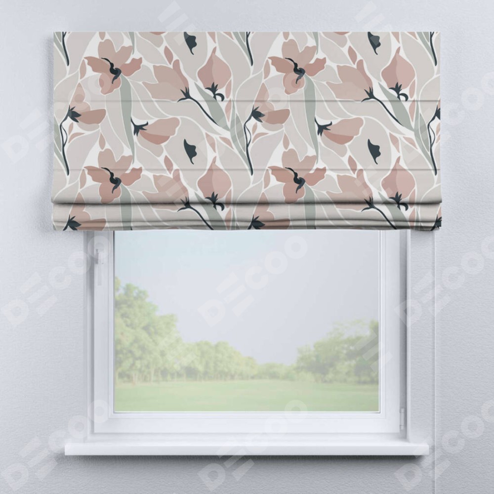 Римская штора производителя «Cortin», используется для проёма, пошита из ткани блэкаут с нанесением сублимационной печати «Тюльпаны пастель». Имеет универсальный механизм и подходит для монтажа: на потолок, на стену и в нишу.
