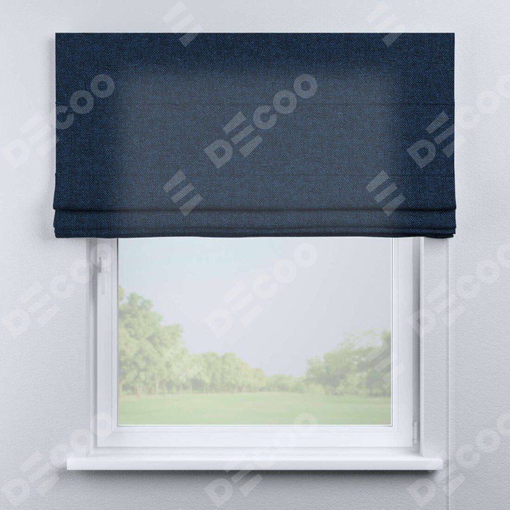 Римская штора производителя «Cortin», используется для проёма, пошита из ткани лён кашемир тёмно-синий, артикул ткани 17215. Имеет универсальный механизм и подходит для монтажа: на потолок, на стену и в нишу.