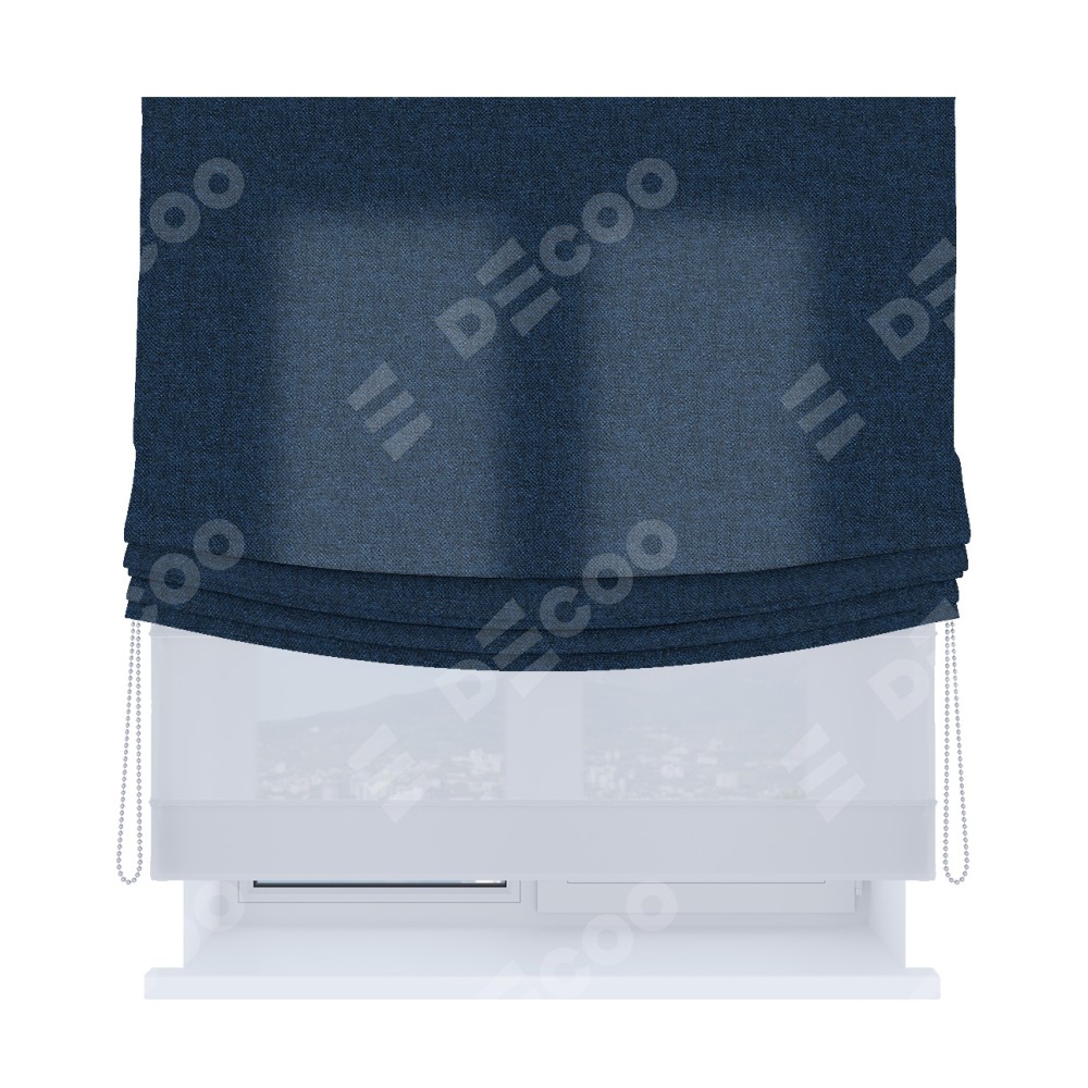Римская штора день-ночь производителя «Cortin», используется для проёма, пошита из двух полотен, с лицевой стороны лён кашемир тёмно-синий артикул 17215, вторая ткань тюль (по стандарту комплектуется тюль белого цвета артикул V-01). Имеет универсальный механизм и подходит для монтажа: на потолок, на стену и в нишу. Удобное управление каждой шторой отдельно.