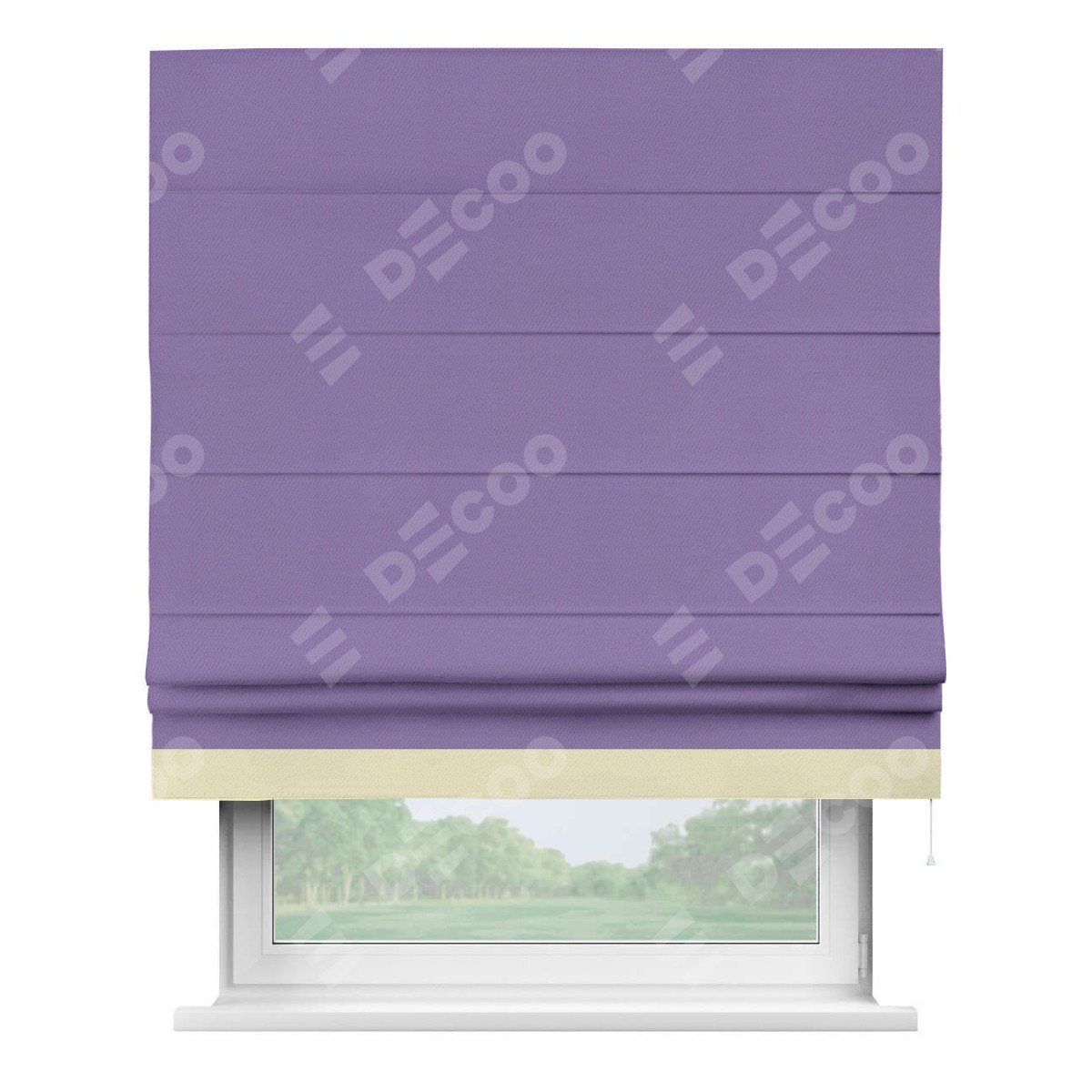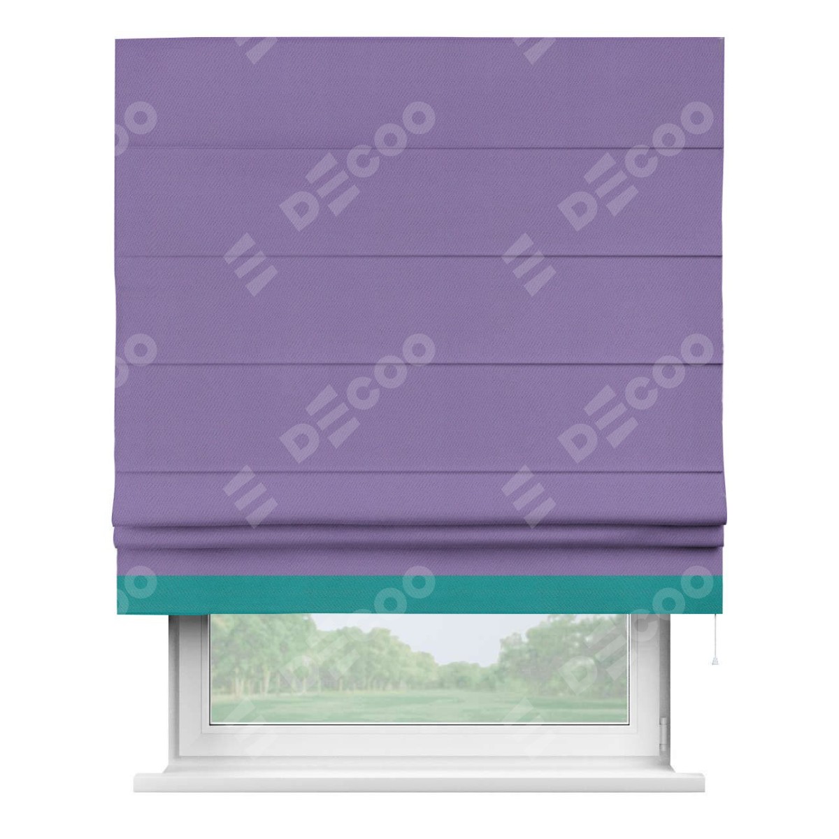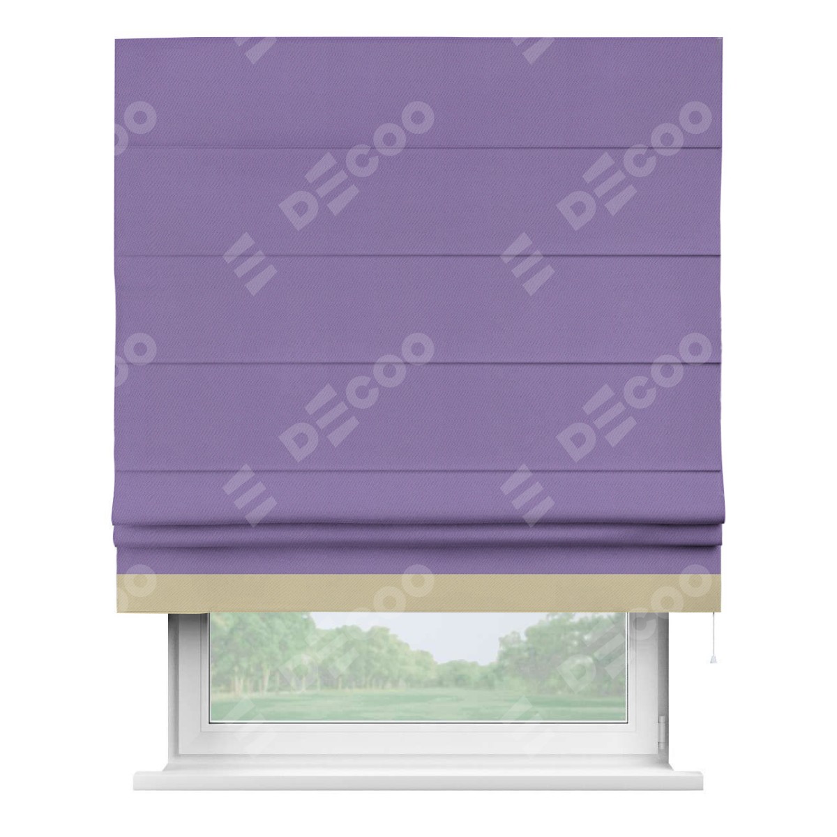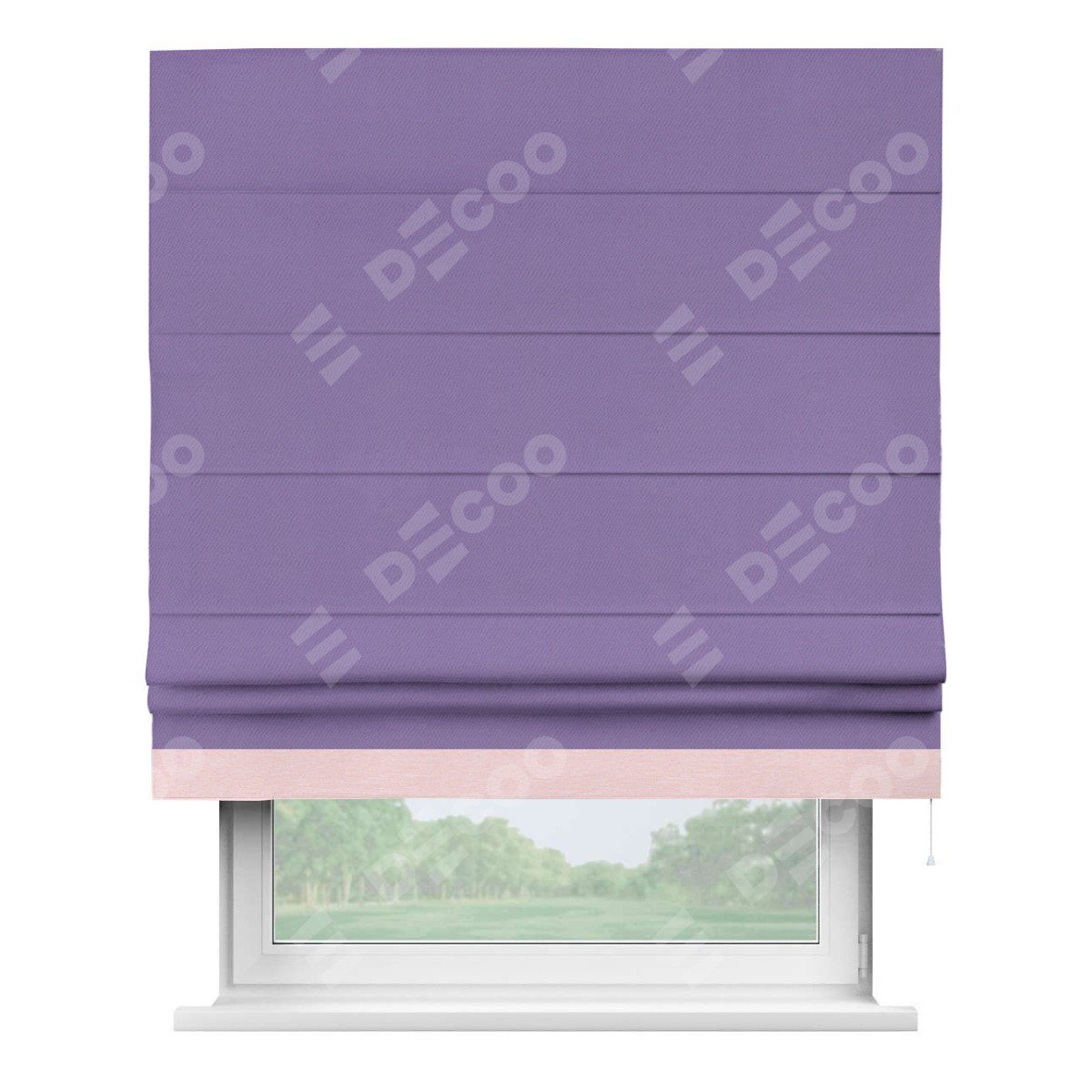 Римская штора «Кортин» с кантом Джестер, для проема, ткань блэкаут однотонный сиреневый