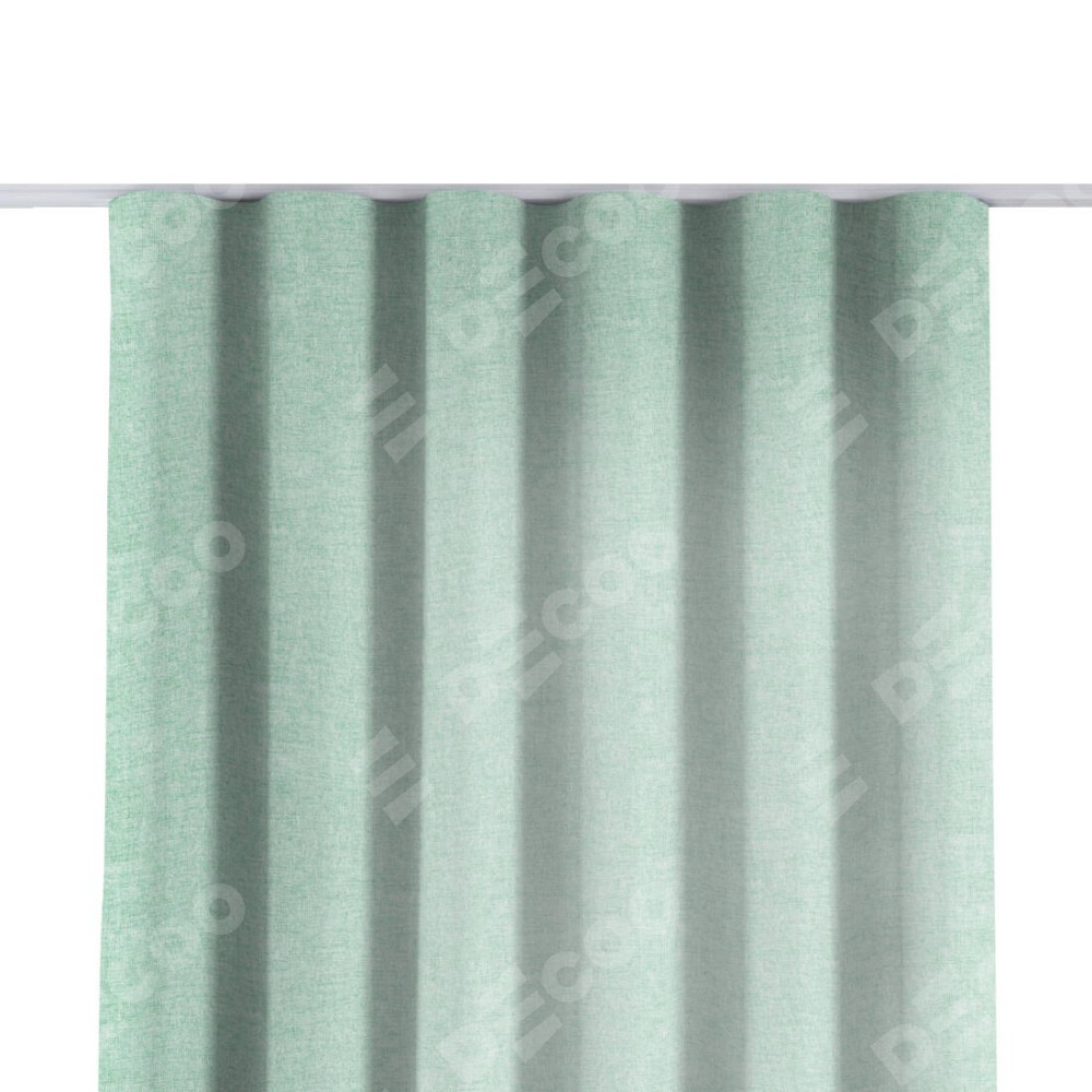 Комплект прямых штор, от производителя «Cortin», пошиты из ткани лён кашемир мятный, артикул ткани 21617. С изнаночной стороны в верхней части штор пристрачивается шторная лента с декоративными складками «Волна». Для создания элегантных складок прямые шторы шьются по стандарту с коэффициентом 1:2 (на 100 см. ширины проёма 200 см. ширины ткани).
