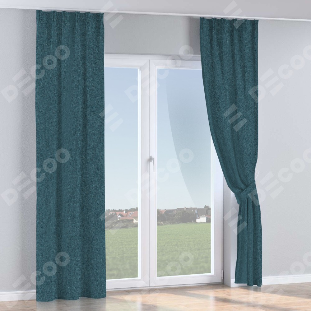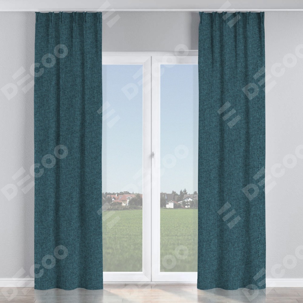 Комплект прямых штор, от производителя «Cortin», пошиты из ткани лён кашемир синий, артикул ткани 21623. С изнаночной стороны в верхней части штор пристрачивается шторная лента с декоративными складками «Кустик». Для создания элегантных складок прямые шторы шьются по стандарту с коэффициентом 1:2 (на 100 см. ширины проёма 200 см. ширины ткани).