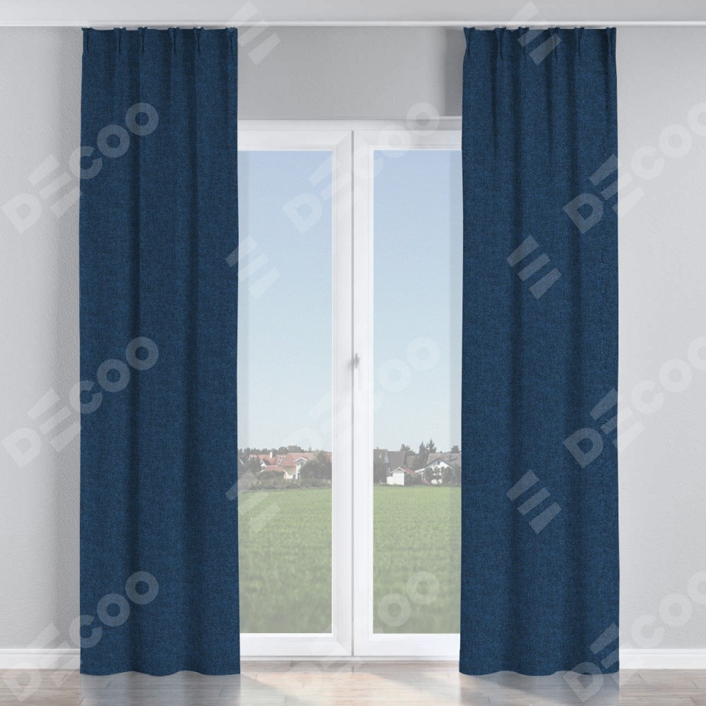Комплект прямых штор, от производителя «Cortin», пошиты из ткани лён кашемир тёмно-синий, артикул ткани 17215. С изнаночной стороны в верхней части штор пристрачивается шторная лента с декоративными складками «Кустик». Для создания элегантных складок прямые шторы шьются по стандарту с коэффициентом 1:2 (на 100 см. ширины проёма 200 см. ширины ткани).