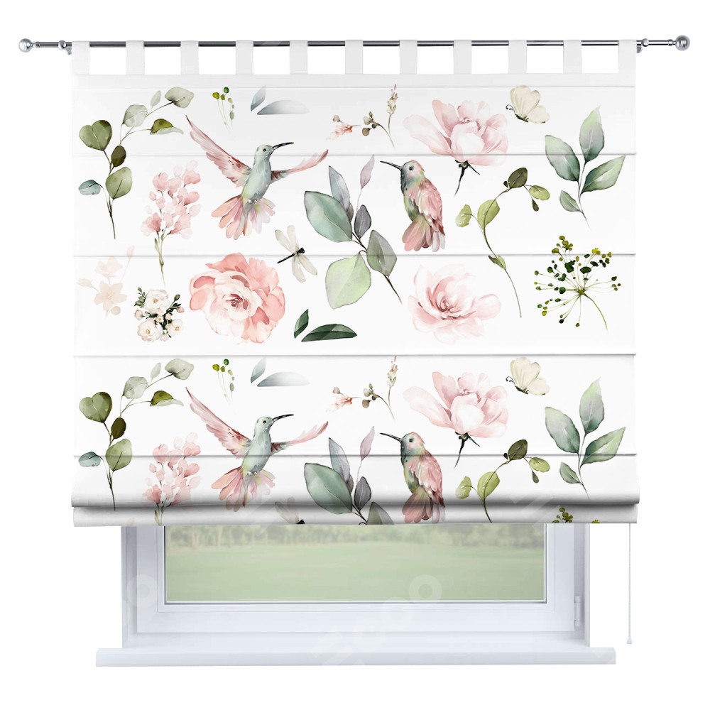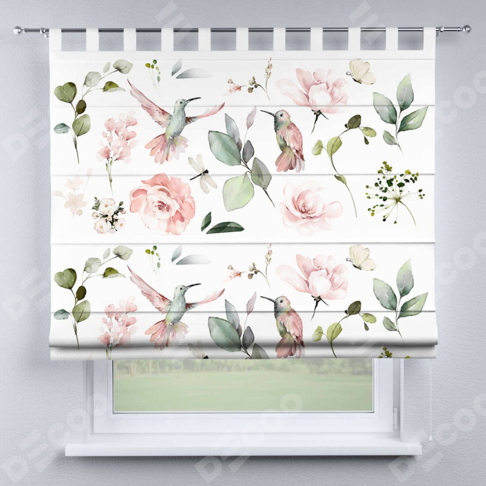 Римская штора производителя «Cortin», используется для проёма, пошита из ткани блэкаут с нанесением сублимационной печати «Уютный сад». Данная модель пошита на петлях, комплектуется на выбор круглым карнизом и подходит для монтажа на стену. Римская штора на петлях имеет простую систему регулировки высоты, отличительным преимуществом данной модели является простой способ монтажа. Достаточно повесить ее на трубу и штора готова!