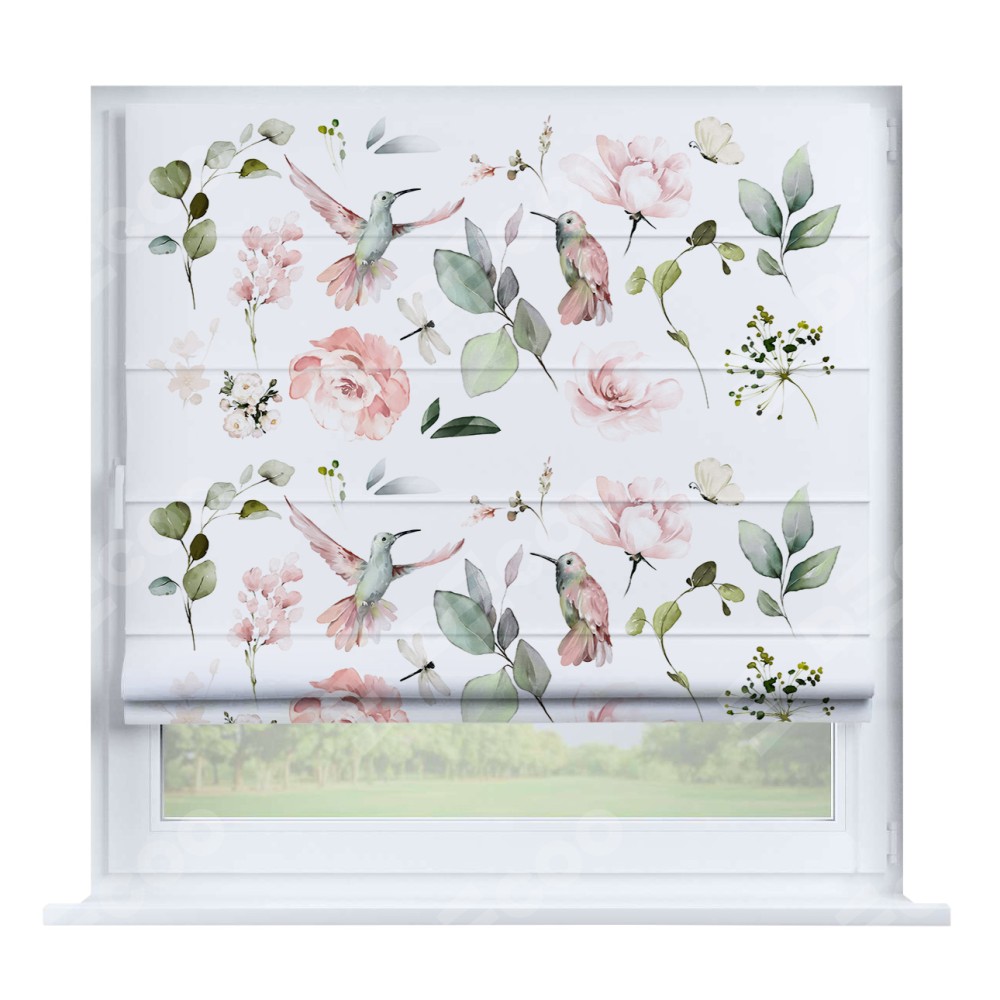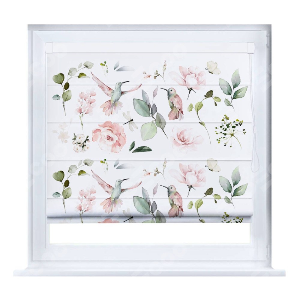 Римская штора производителя «Cortin», устанавливается на створку окна, пошита из ткани блэкаут с нанесением сублимационной печати «Уютный сад». Штора шьётся по индивидуальным размерам, для данного типа римской шторы возможная ширина от 35 до 150 см., высота до 250 см.