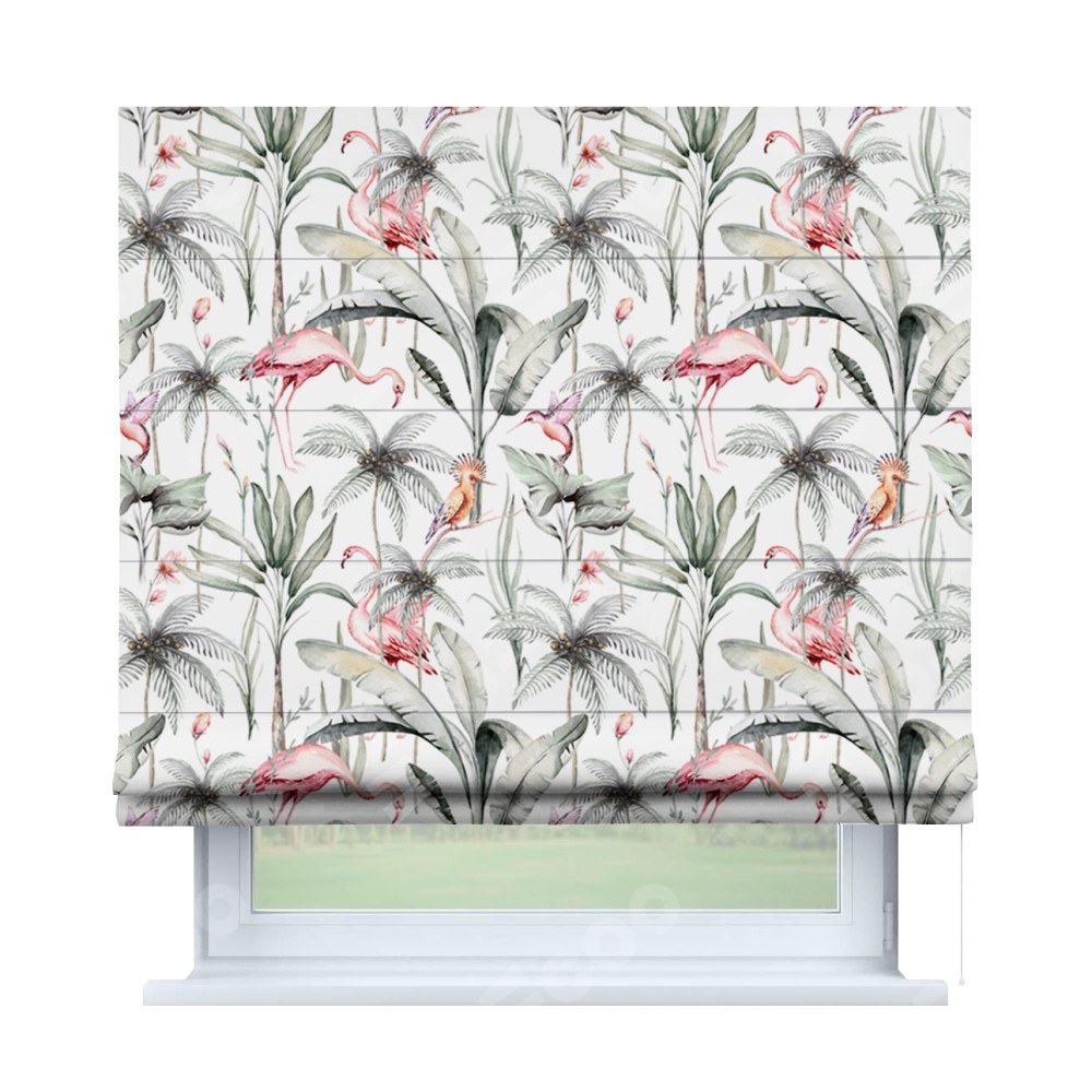 Римская штора «Кортин» для проема «Изящные фламинго»