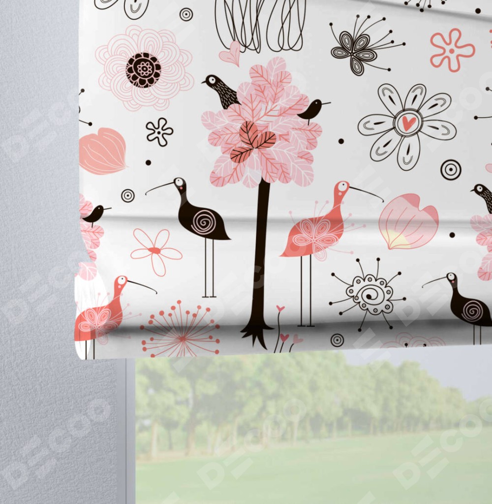 Римская штора производителя «Cortin», используется для проёма, пошита из ткани блэкаут с нанесением сублимационной печати «Любопытные птички». Данная модель пошита на петлях, комплектуется на выбор круглым карнизом и подходит для монтажа на стену. Римская штора на петлях имеет простую систему регулировки высоты, отличительным преимуществом данной модели является простой способ монтажа. Достаточно повесить ее на трубу и штора готова!