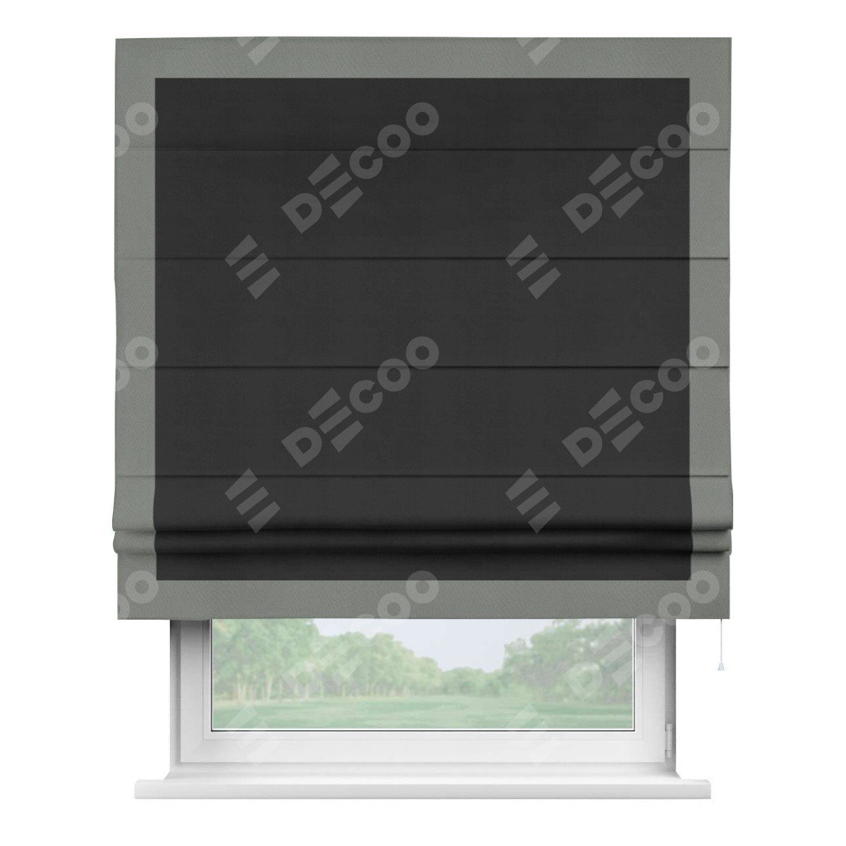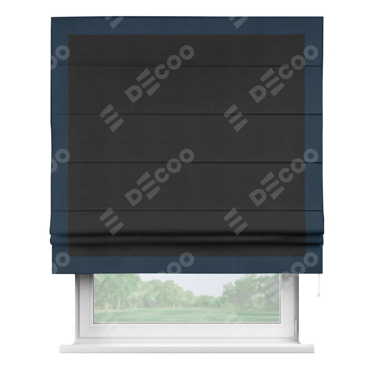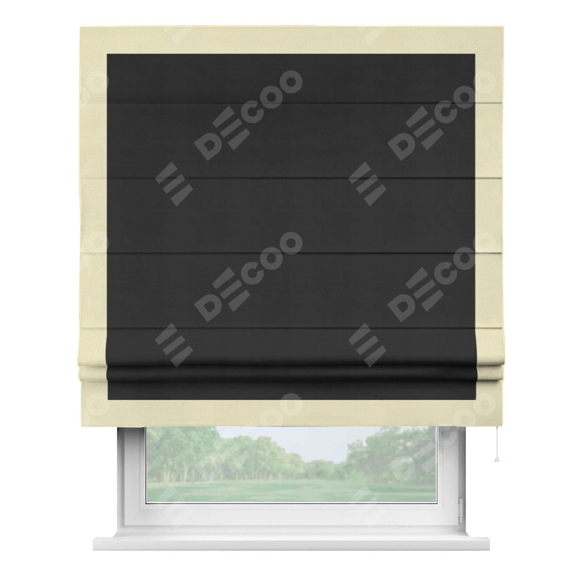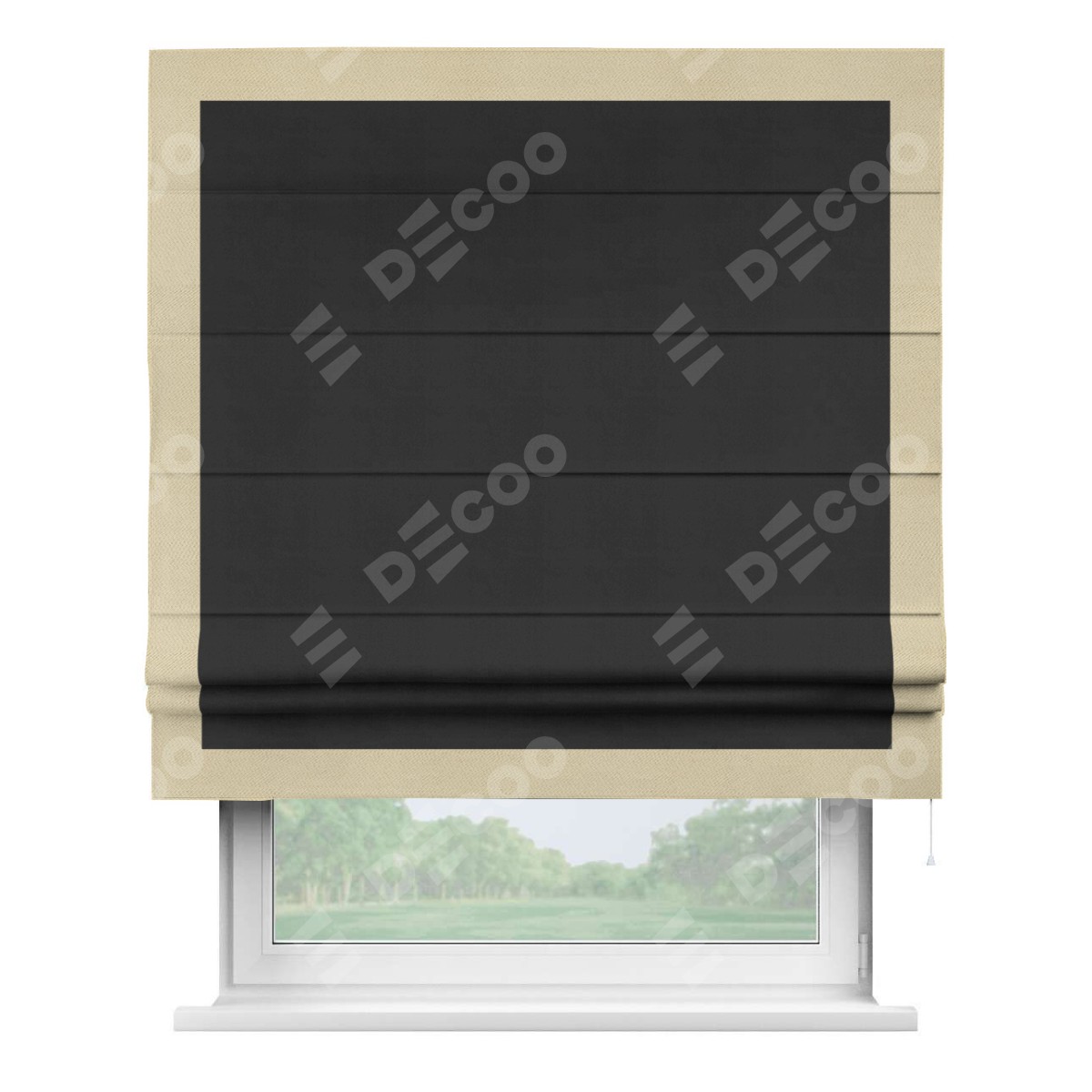 Римская штора производителя «Cortin», используется для проёма, пошита из ткани блэкаут однотонный черный, артикул ткани 79904. Отделка шторы кантом «Чесс», ткань для канта используется из блэкаута однотонного разной расцветки на выбор. Имеет универсальный механизм и подходит для монтажа: на потолок, на стену и в нишу.