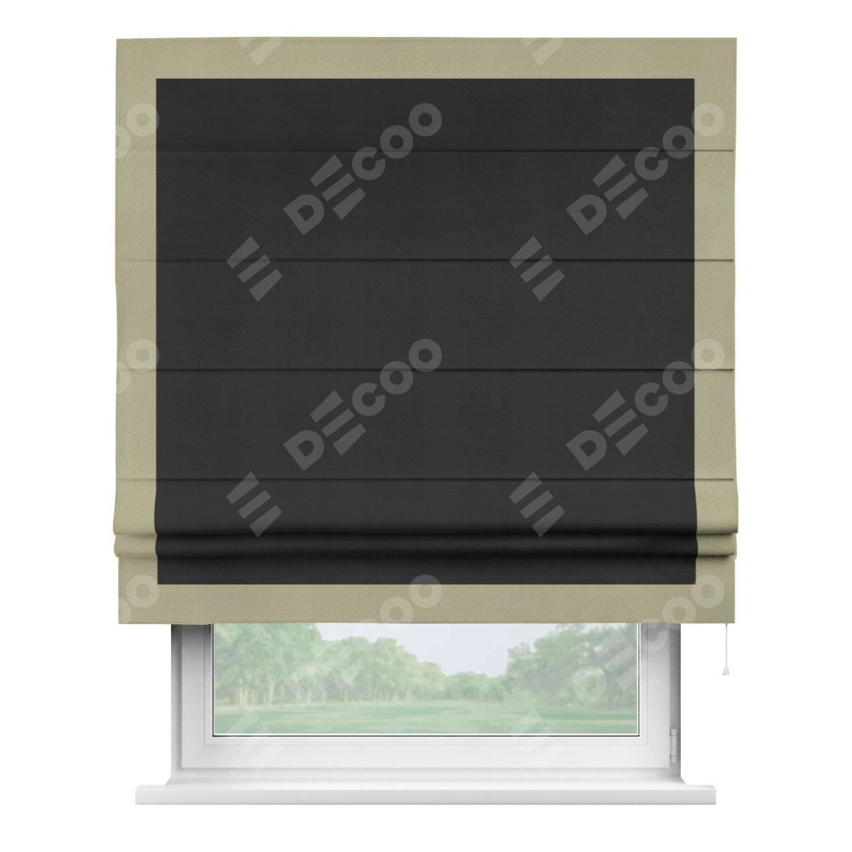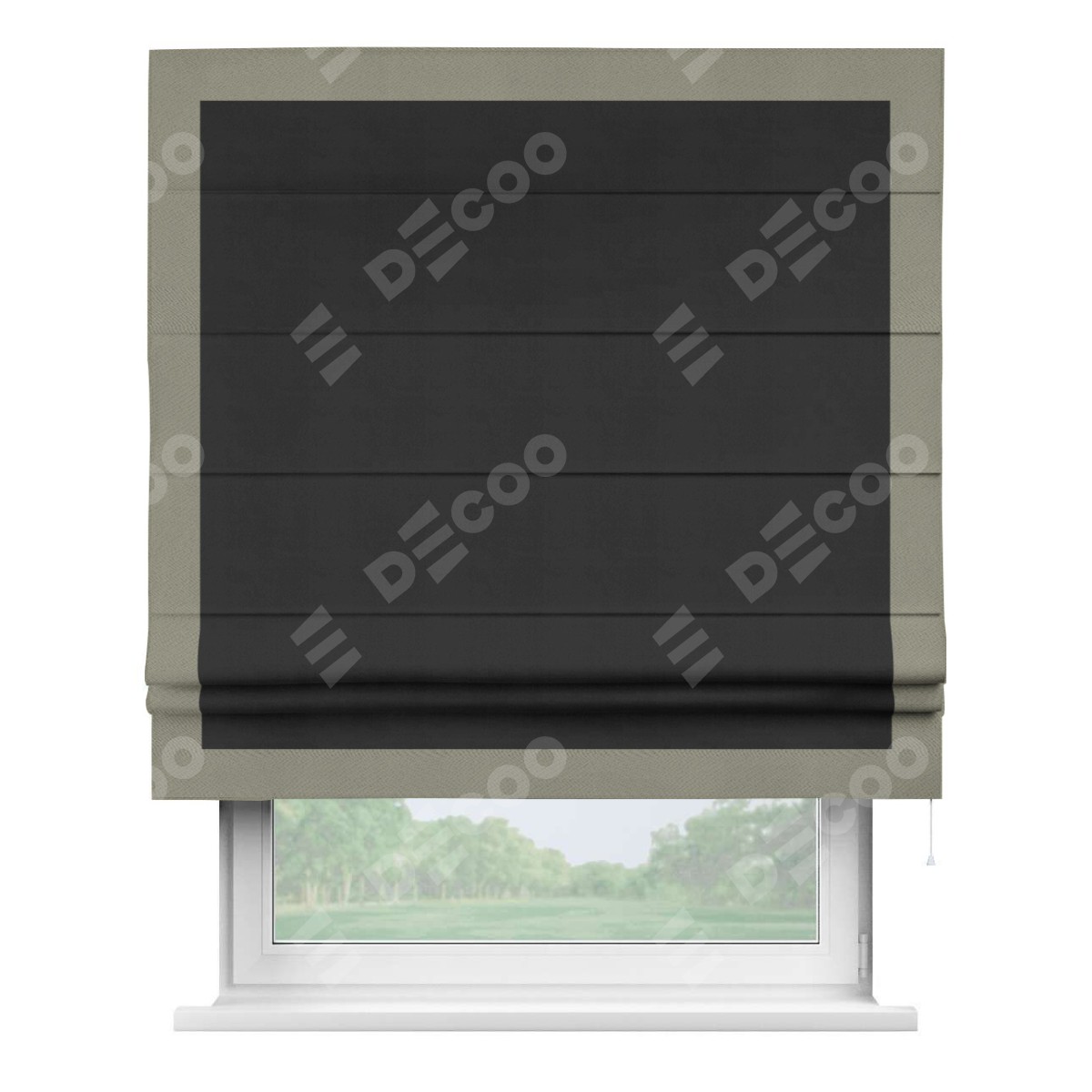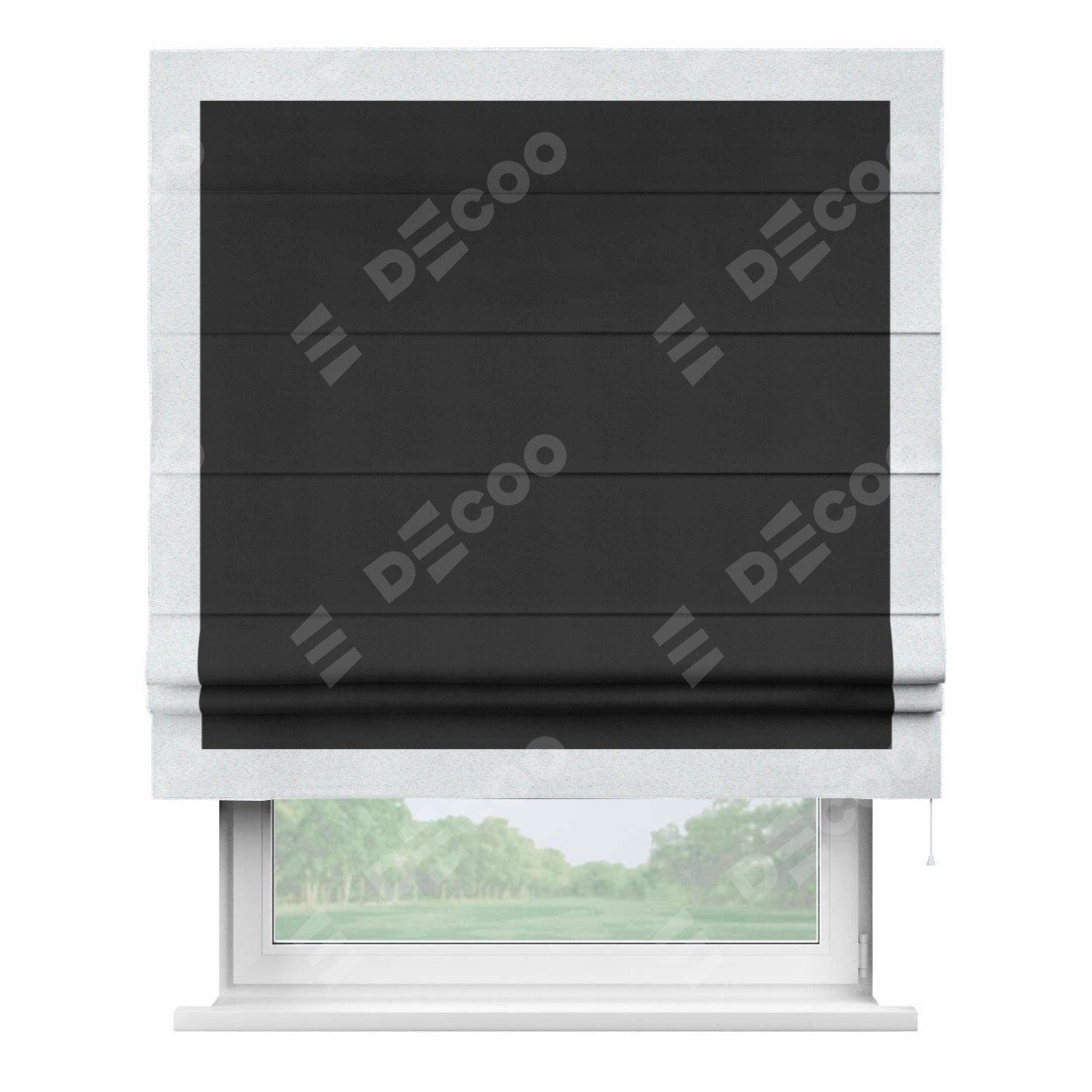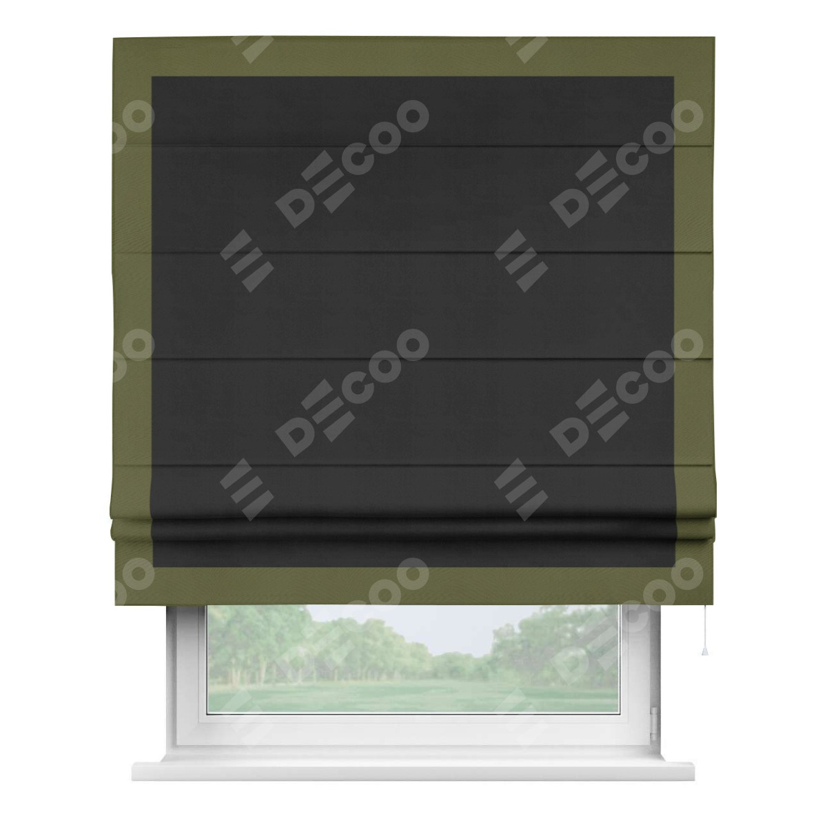 Римская штора производителя «Cortin», используется для проёма, пошита из ткани блэкаут однотонный черный, артикул ткани 79904. Отделка шторы кантом «Чесс», ткань для канта используется из блэкаута однотонного разной расцветки на выбор. Имеет универсальный механизм и подходит для монтажа: на потолок, на стену и в нишу.