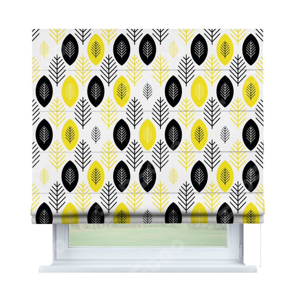 Римская штора производителя «Cortin», используется для проёма, пошита из ткани блэкаут с нанесением сублимационной печати «Черно-желтый модерн». Имеет универсальный механизм и подходит для монтажа: на потолок, на стену и в нишу.