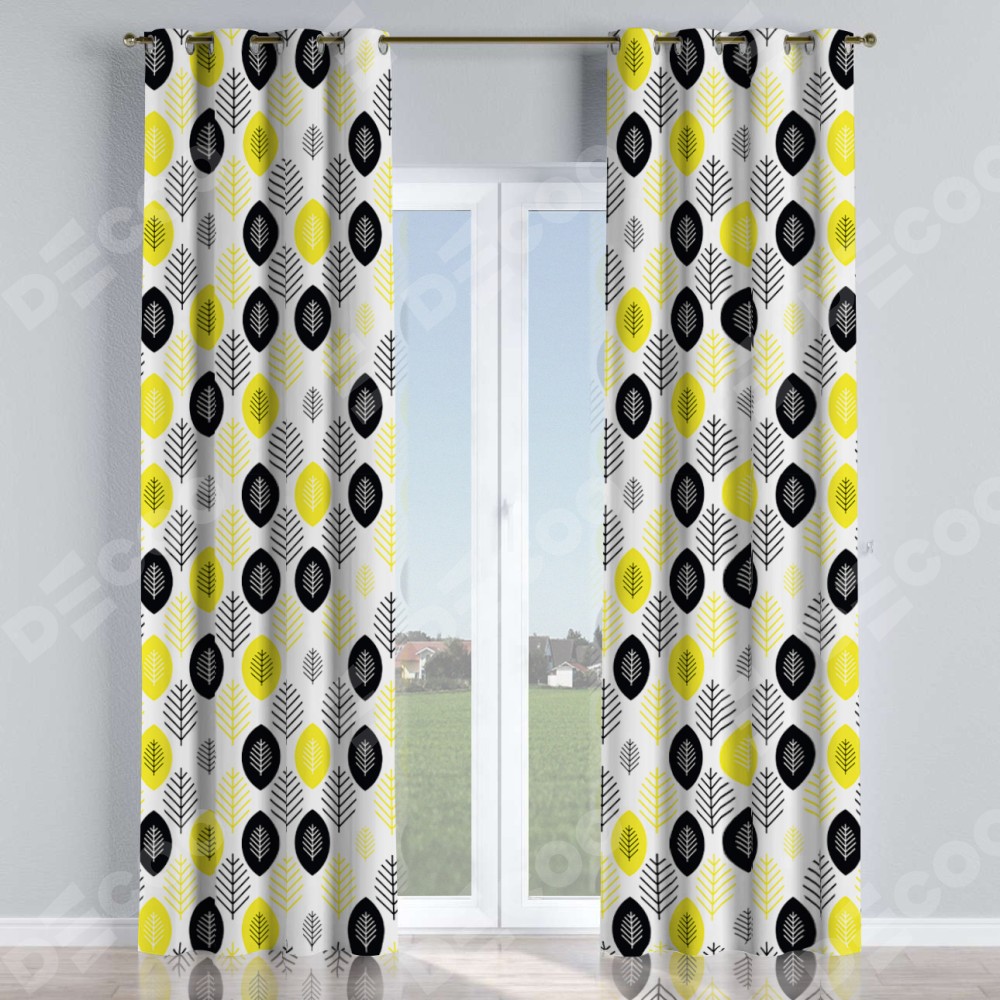 Комплект прямых штор, от производителя «Cortin», пошиты из ткани блэкаут с нанесением сублимационной печати «Черно-желтый модерн». Данная модель пошита на люверсах, комплектуется на выбор круглым карнизом и подходит для монтажа на стену или потолок. Прямые шторы на люверсах шьются по стандарту с коэффициентом 1/2 (на 100 см. ширины проёма 200 см. ширины ткани), отличительным преимуществом данной модели является простой способ монтажа. Достаточно повесить ее на трубу и штора готова!