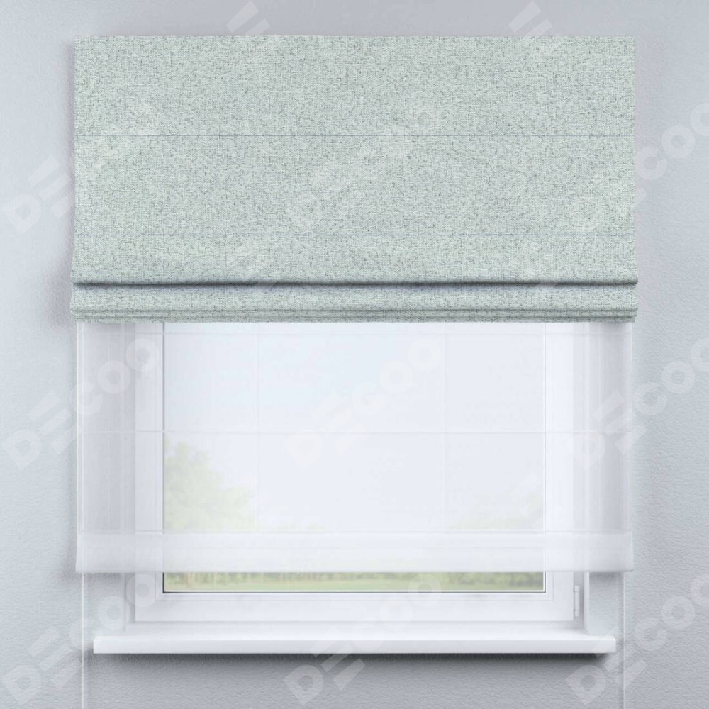 Римская штора день-ночь производителя «Cortin», используется для проёма, пошита из двух полотен, с лицевой стороны лён блэкаут белый артикул 69451, вторая ткань тюль (по стандарту комплектуется тюль белого цвета артикул V-01). Имеет универсальный механизм и подходит для монтажа: на потолок, на стену и в нишу.