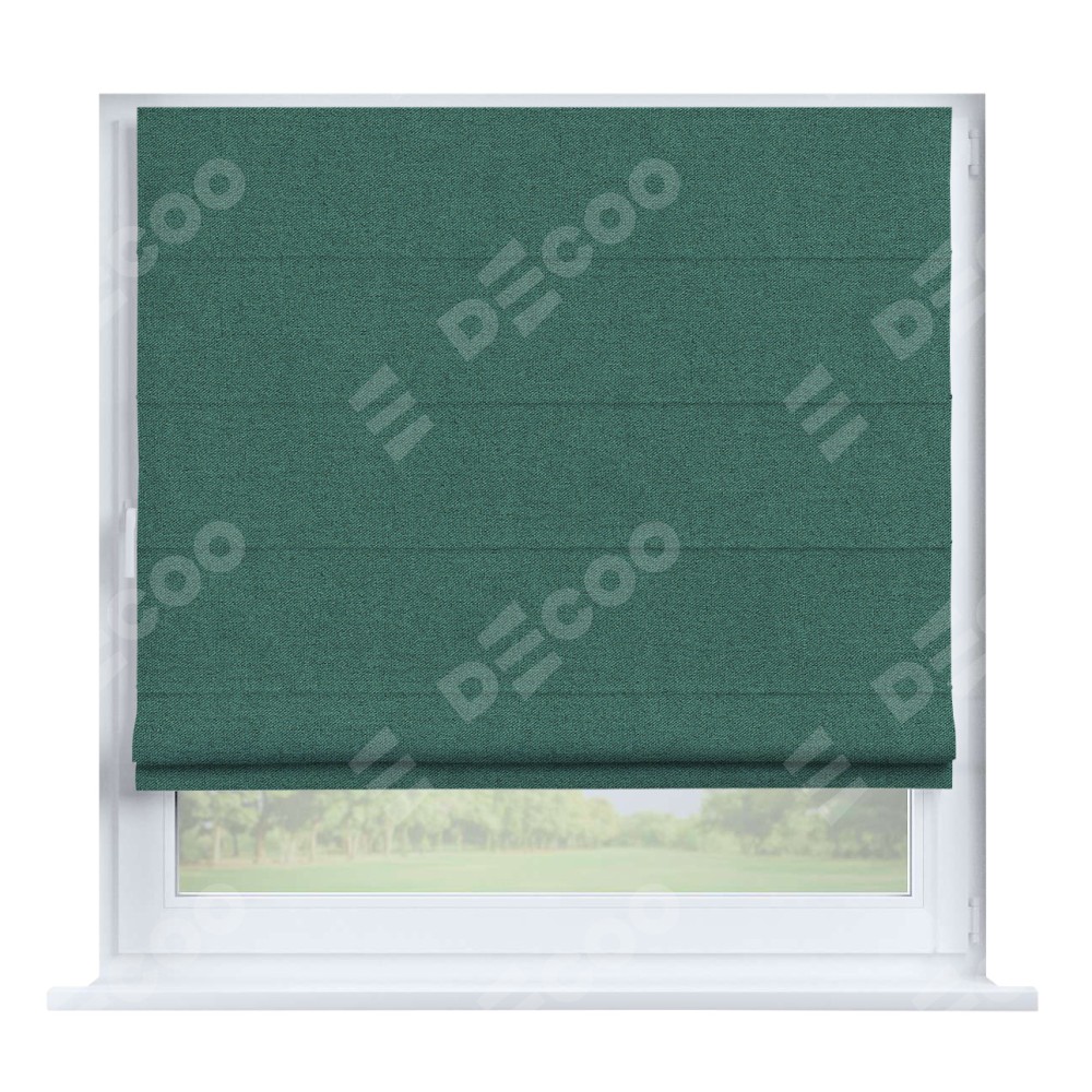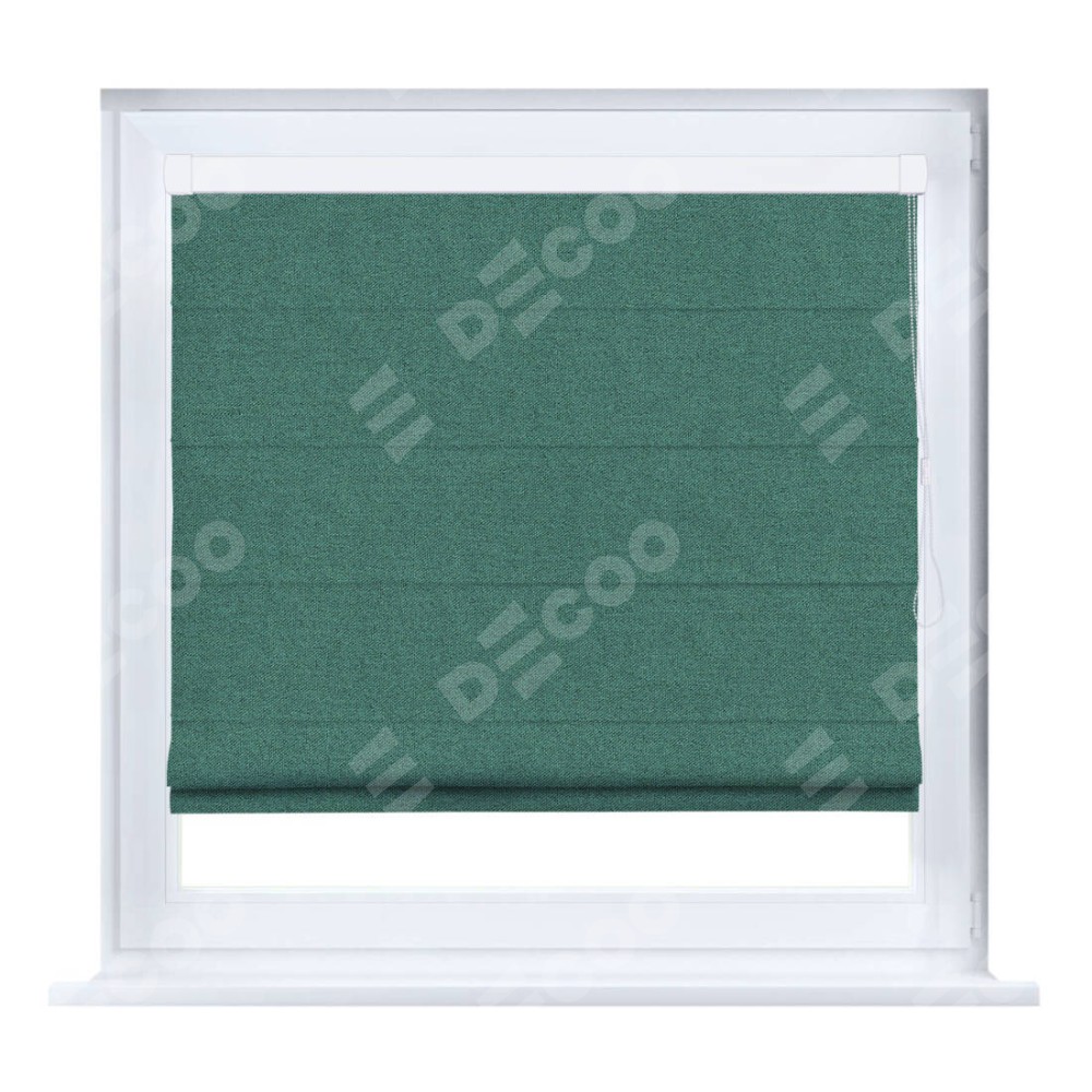 Римская штора производителя «Cortin», устанавливается на створку окна, пошита из ткани лён блэкаут бирюзовый, артикул 69517. Штора шьётся по индивидуальным размерам, для данного типа римской шторы возможная ширина от 35 до 150 см., высота до 250 см.