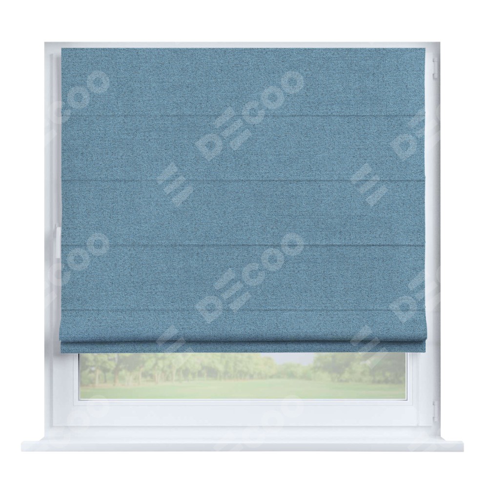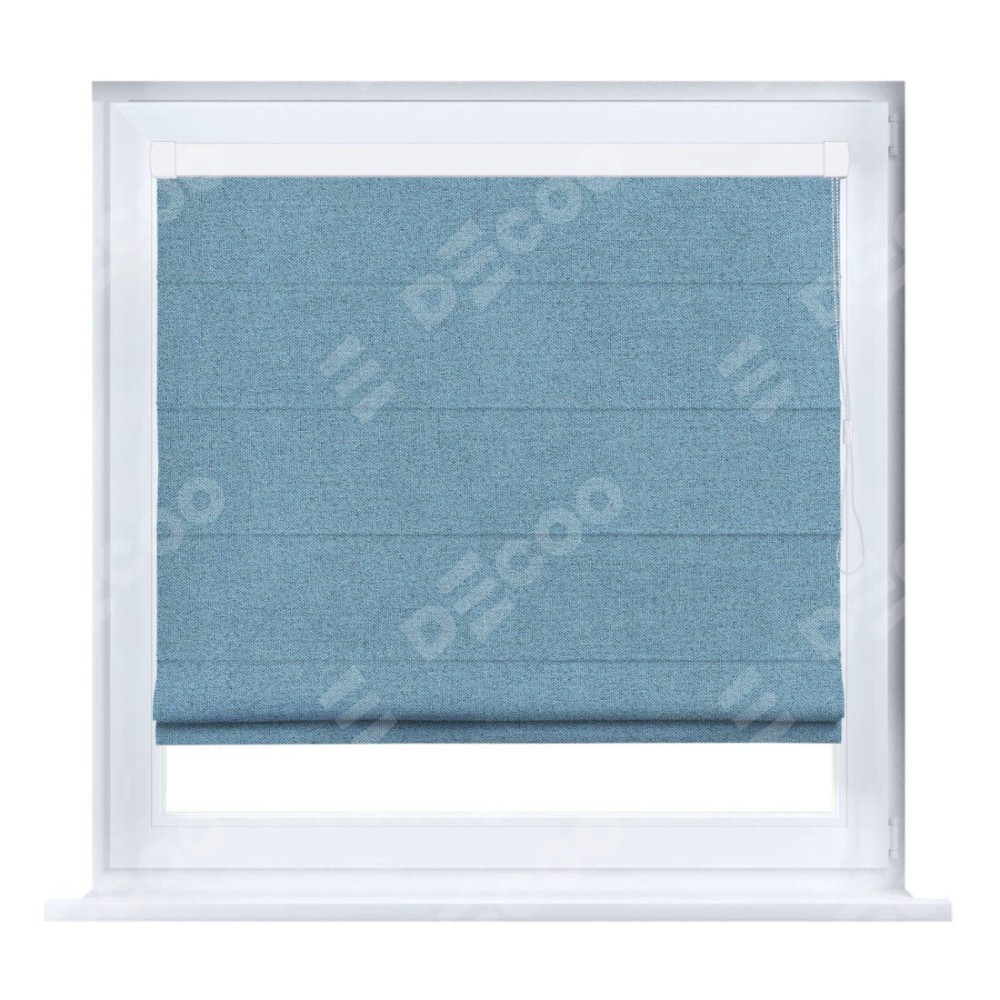 Римская штора производителя «Cortin», устанавливается на створку окна, пошита из ткани лён блэкаут голубой, артикул 69574. Штора шьётся по индивидуальным размерам, для данного типа римской шторы возможная ширина от 35 до 150 см., высота до 250 см.