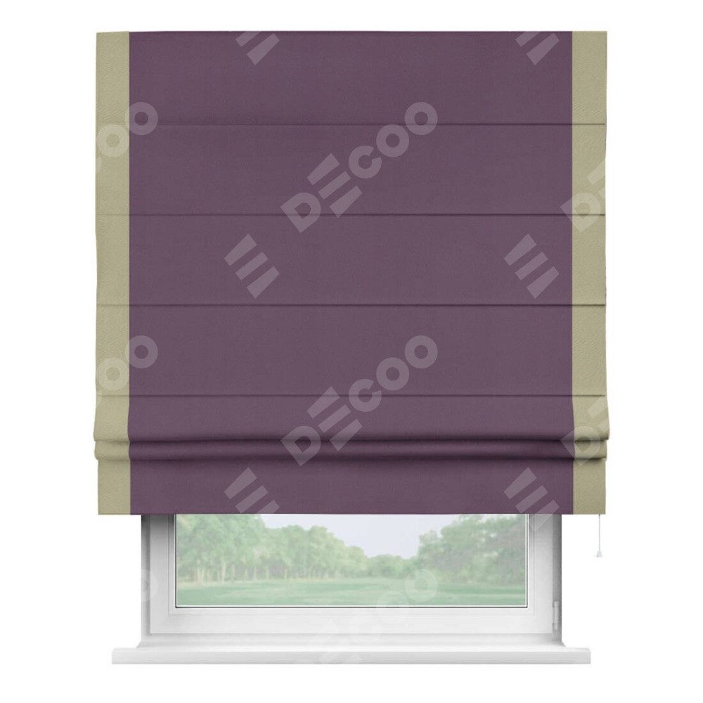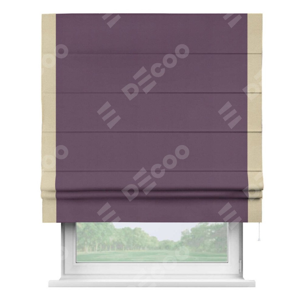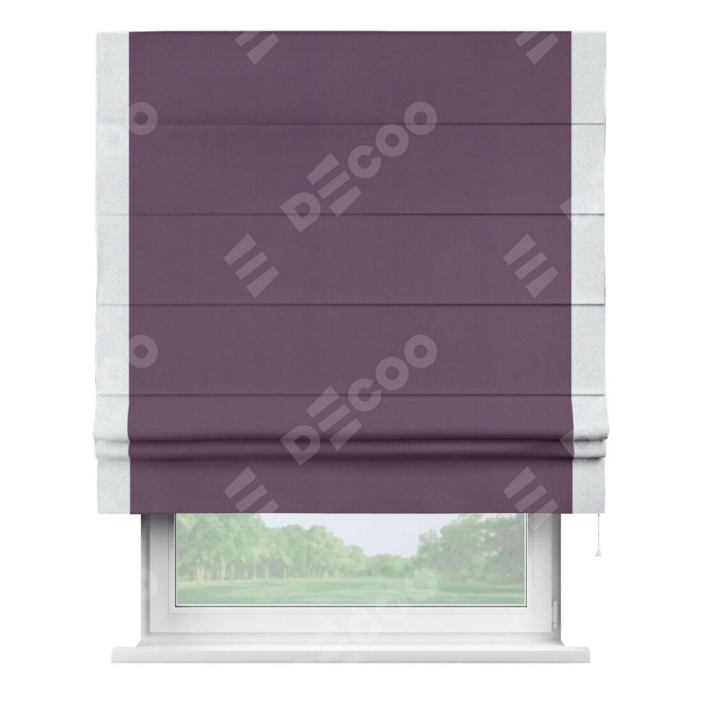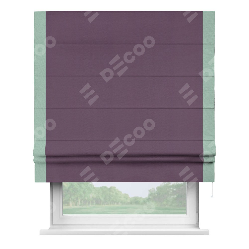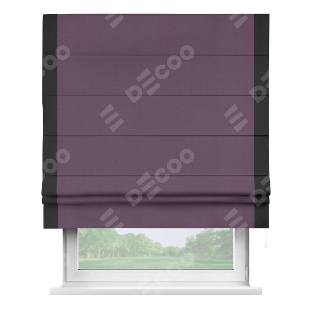 Римская штора производителя «Cortin», используется для проёма, пошита из ткани блэкаут однотонный фуксия, артикул ткани 88303. Отделка шторы кантом «Стрим Дуо», ткань для канта используется из блэкаута однотонного разной расцветки на выбор. Имеет универсальный механизм и подходит для монтажа: на потолок, на стену и в нишу.