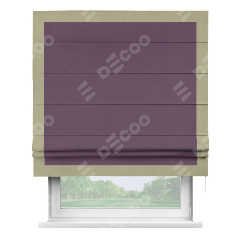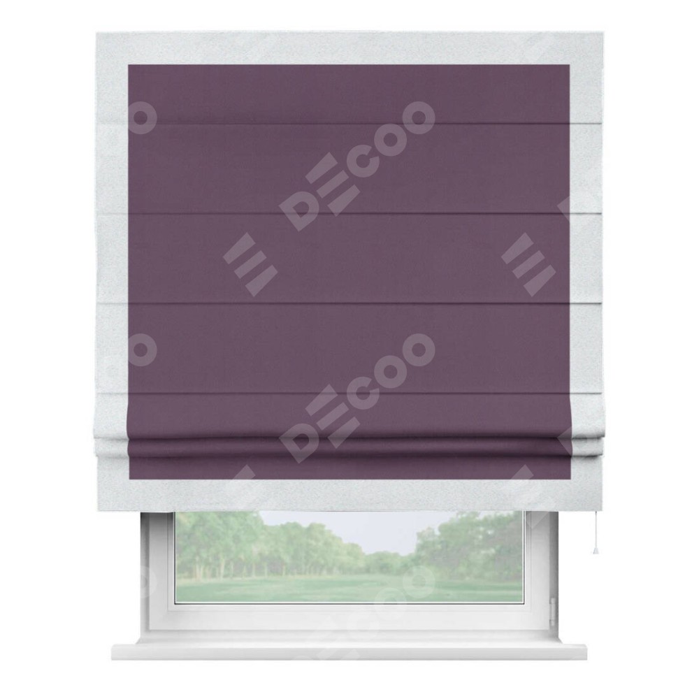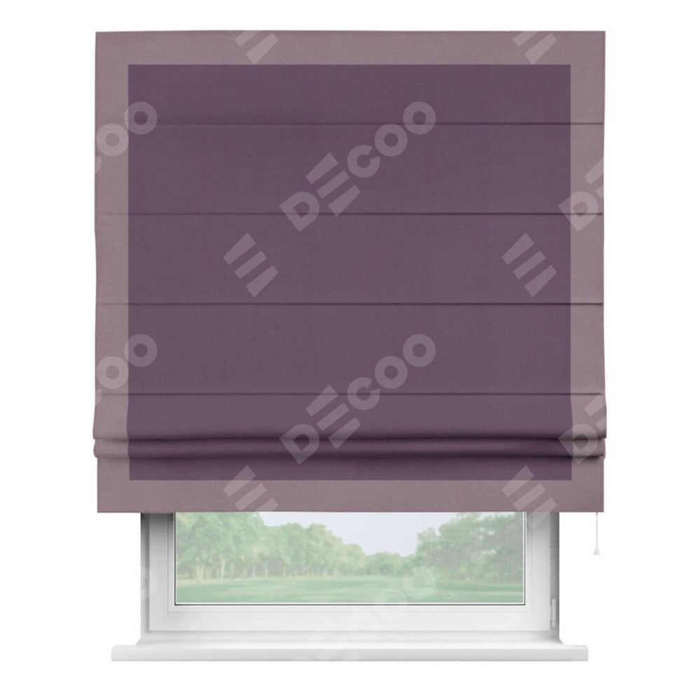 Римская штора производителя «Cortin», используется для проёма, пошита из ткани блэкаут однотонный фуксия, артикул ткани 88303. Отделка шторы кантом «Чесс», ткань для канта используется из блэкаута однотонного разной расцветки на выбор. Имеет универсальный механизм и подходит для монтажа: на потолок, на стену и в нишу.