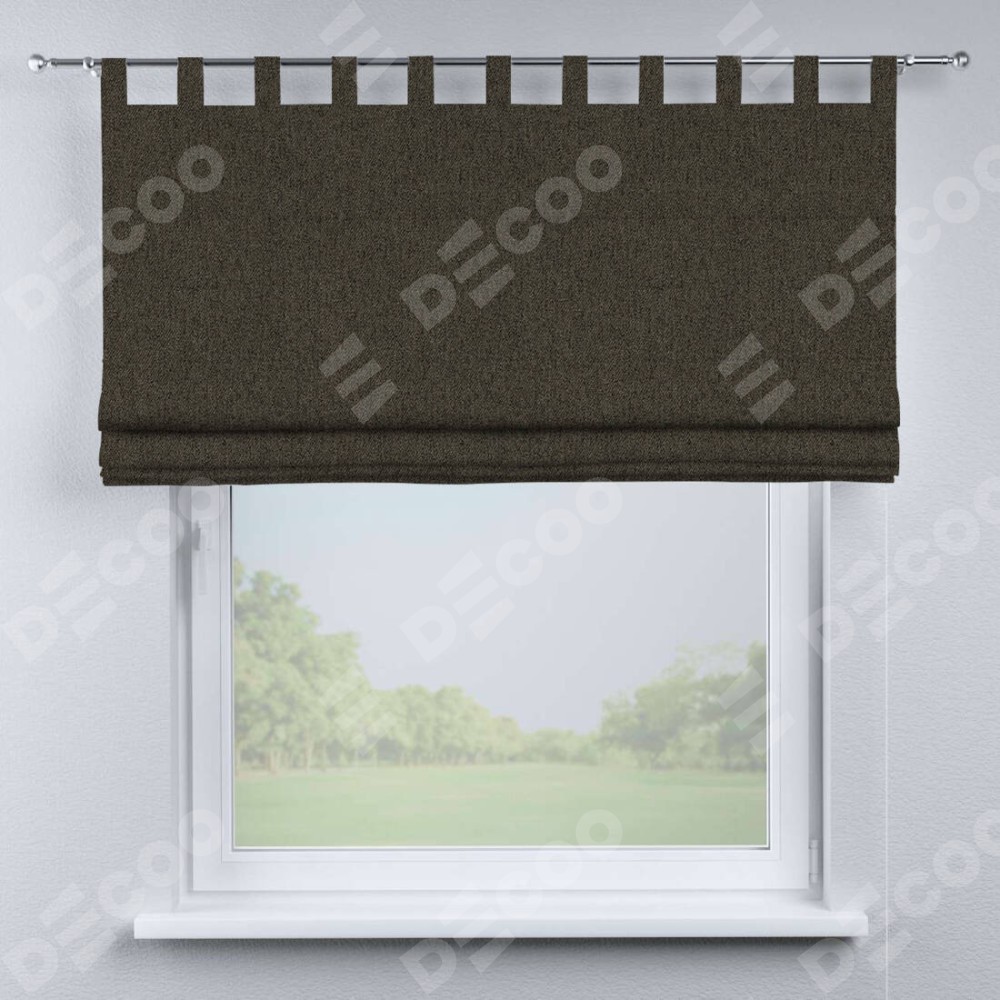 Римская штора производителя «Cortin», используется для проёма, пошита из ткани твид блэкаут тёмно-коричневый, артикул ткани 21584. Данная модель пошита на петлях, комплектуется на выбор круглым карнизом и подходит для монтажа на стену. Римская штора на петлях имеет простую систему регулировки высоты, отличительным преимуществом данной модели является простой способ монтажа. Достаточно повесить ее на трубу и штора готова!