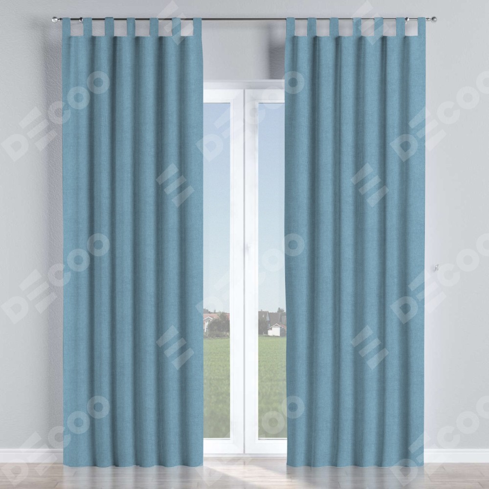 Комплект прямых штор, от производителя «Cortin», пошиты из ткани лён блэкаут голубой, артикул ткани 69574. Данная модель пошита на петлях, комплектуется на выбор круглым карнизом и подходит для монтажа на стену или потолок. Прямые шторы на петлях шьются по стандарту с коэффициентом 1/2 (на 100 см. ширины проёма 200 см. ширины ткани), отличительным преимуществом данной модели является простой способ монтажа. Достаточно повесить ее на трубу и штора готова!