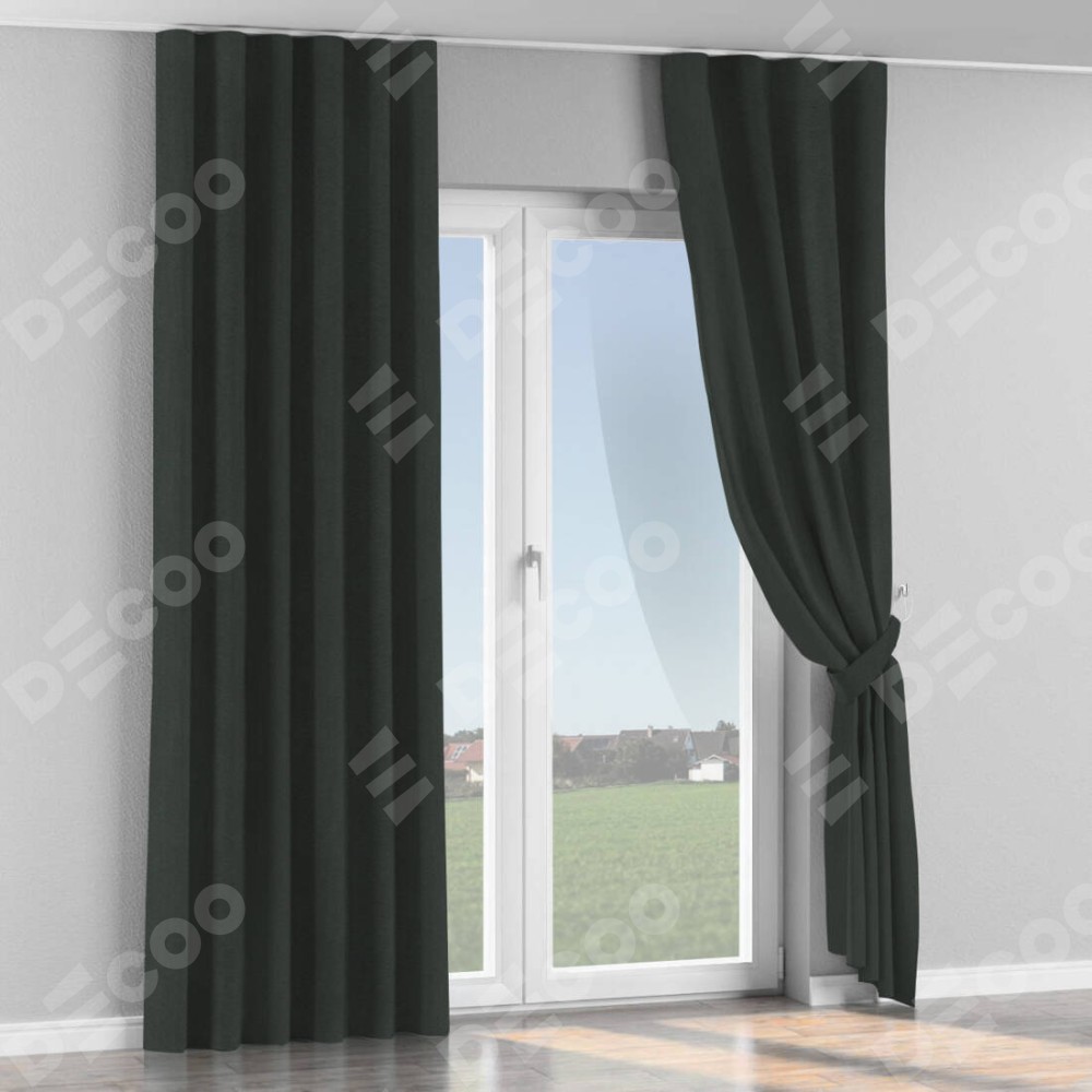 Комплект прямых штор, от производителя «Cortin», пошиты из ткани лён блэкаут графит, артикул ткани 69448. С изнаночной стороны в верхней части штор пристрачивается шторная лента с декоративными складками «Волна». Для создания элегантных складок прямые шторы шьются по стандарту с коэффициентом 1:2 (на 100 см. ширины проёма 200 см. ширины ткани).