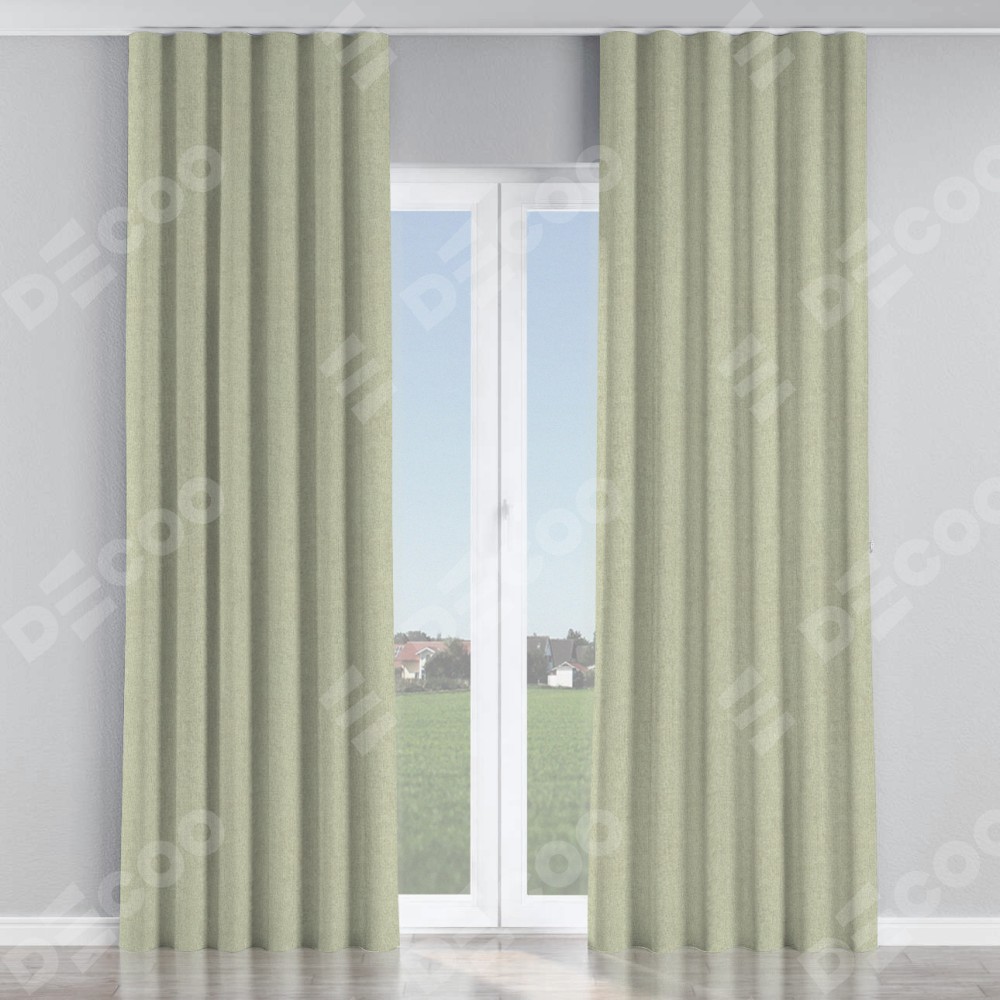 Комплект прямых штор, от производителя «Cortin», пошиты из ткани лён блэкаут серо-бежевый, артикул ткани 69450. С изнаночной стороны в верхней части штор пристрачивается шторная лента с декоративными складками «Волна». Для создания элегантных складок прямые шторы шьются по стандарту с коэффициентом 1:2 (на 100 см. ширины проёма 200 см. ширины ткани).