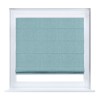 Римская штора кассетного типа, производителя «Cortin», устанавливается только на пластиковые окна и прилегает к стеклопакету, пошита из ткани твид блэкаут небесно-голубой, артикул 21578.