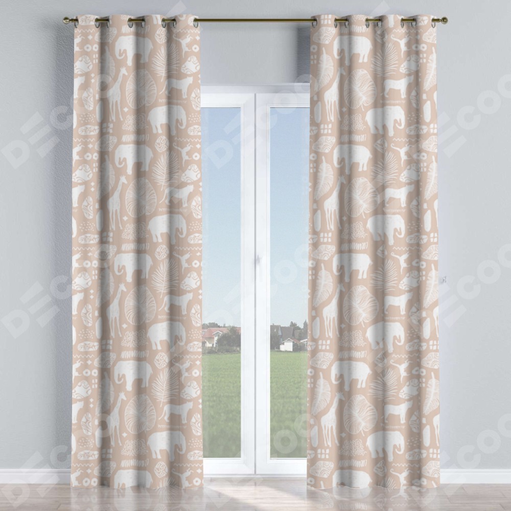 Комплект прямых штор, от производителя «Cortin», пошиты из ткани блэкаут с нанесением сублимационной печати «Африканские животные». Данная модель пошита на люверсах, комплектуется на выбор круглым карнизом и подходит для монтажа на стену или потолок. Прямые шторы на люверсах шьются по стандарту с коэффициентом 1/2 (на 100 см. ширины проёма 200 см. ширины ткани), отличительным преимуществом данной модели является простой способ монтажа. Достаточно повесить ее на трубу и штора готова!