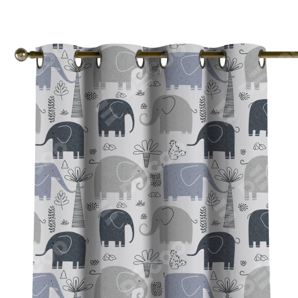 Комплект прямых штор, от производителя «Cortin», пошиты из ткани блэкаут с нанесением сублимационной печати «Серые слоники». Данная модель пошита на люверсах, комплектуется на выбор круглым карнизом и подходит для монтажа на стену или потолок. Прямые шторы на люверсах шьются по стандарту с коэффициентом 1/2 (на 100 см. ширины проёма 200 см. ширины ткани), отличительным преимуществом данной модели является простой способ монтажа. Достаточно повесить ее на трубу и штора готова!