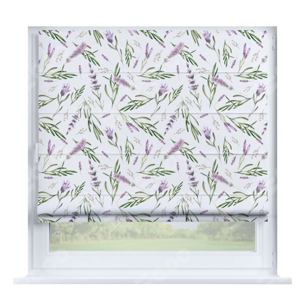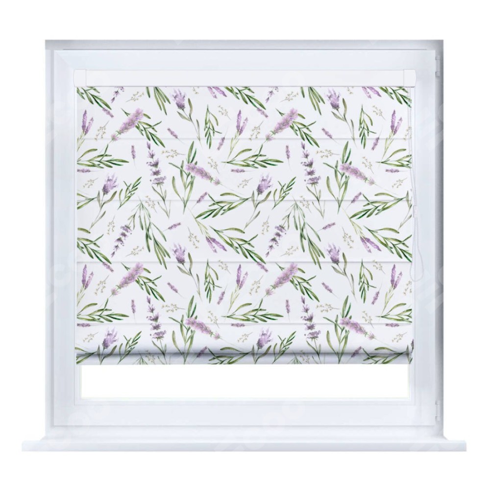 Римская штора производителя «Cortin», устанавливается на створку окна, пошита из ткани блэкаут с нанесением сублимационной печати «Лавандовое поле». Штора шьётся по индивидуальным размерам, для данного типа римской шторы возможная ширина от 35 до 150 см., высота до 250 см.