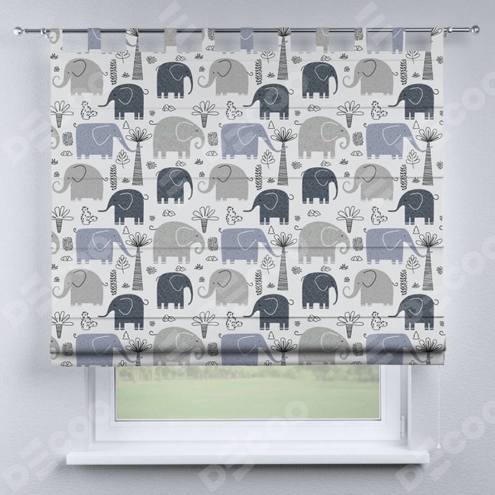 Римская штора производителя «Cortin», используется для проёма, пошита из ткани блэкаут с нанесением сублимационной печати «Серые слоники». Данная модель пошита на петлях, комплектуется на выбор круглым карнизом и подходит для монтажа на стену. Римская штора на петлях имеет простую систему регулировки высоты, отличительным преимуществом данной модели является простой способ монтажа. Достаточно повесить ее на трубу и штора готова!