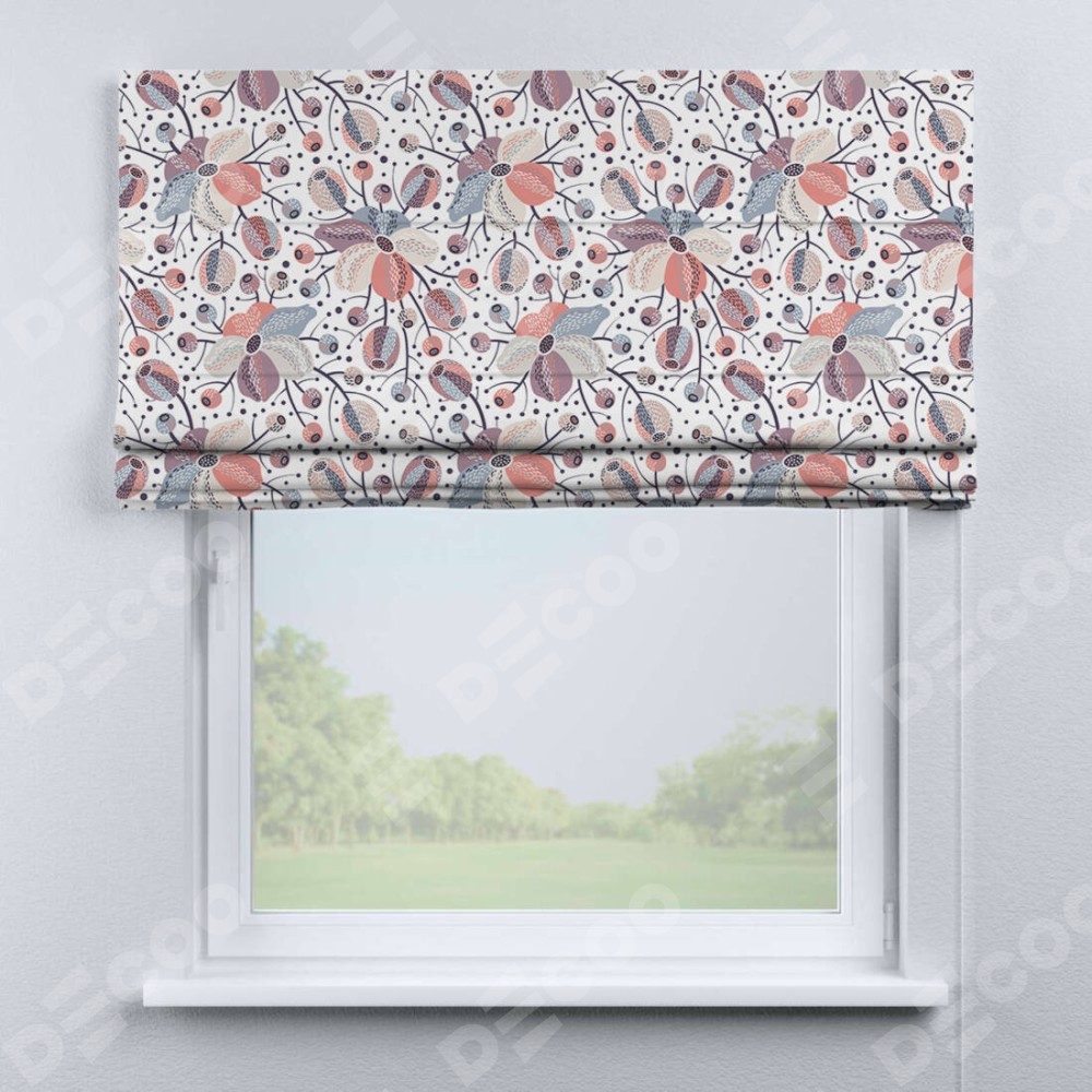 Римская штора производителя «Cortin», используется для проёма, пошита из ткани блэкаут с нанесением сублимационной печати «Цветочный микс». Имеет универсальный механизм и подходит для монтажа: на потолок, на стену и в нишу.
