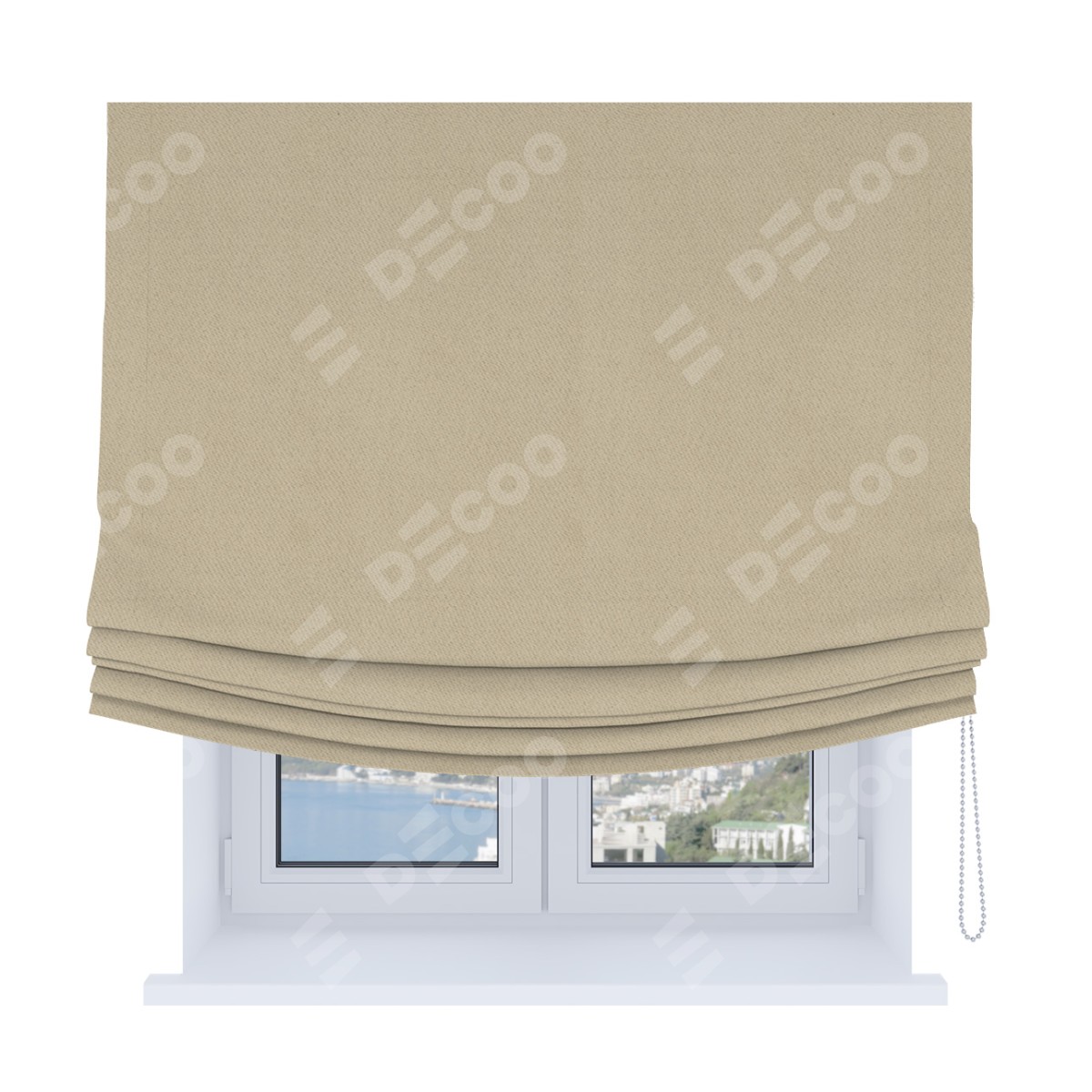 Римская штора Soft производителя «Cortin», используется для проёма, пошита из ткани блэкаут однотонный кофейно-бежевый, артикул ткани 12095−1. Имеет универсальный механизм и подходит для монтажа: на потолок, на стену и в нишу. В отличие от стандартных римских штор, римская штора Soft не имеет горизонтальных вставок и нижнего отвеса. Это позволяет ткани произвольно драпироваться в свободные мягкие складки.