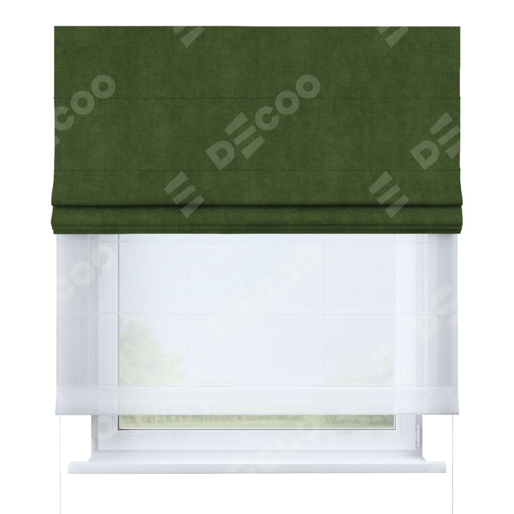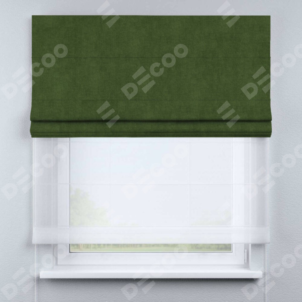 Римская штора «Кортин» день-ночь, ткань вельвет тёмно-салатовый