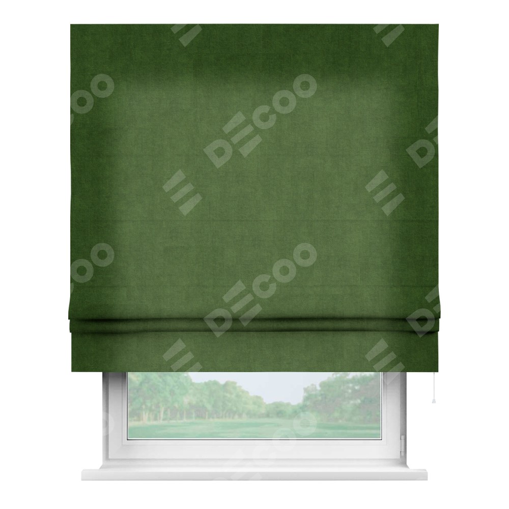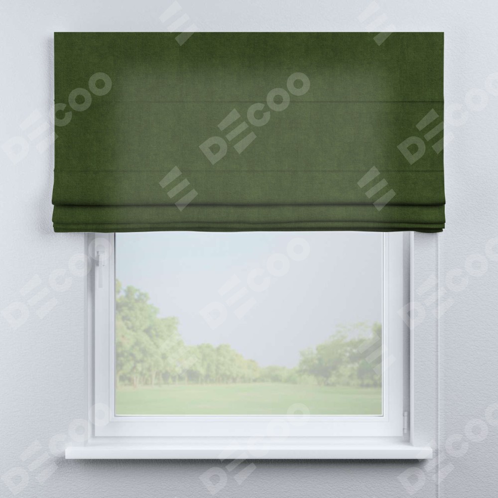 Римская штора производителя «Cortin», используется для проёма, пошита из ткани вельвет тёмно-салатовый, артикул ткани 33805. Имеет универсальный механизм и подходит для монтажа: на потолок, на стену и в нишу.