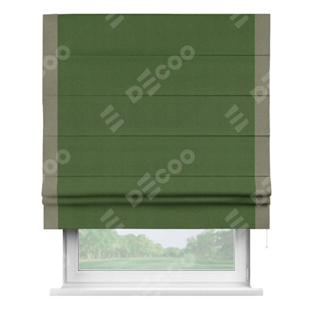 Римская штора «Кортин» с кантом Стрим Дуо, для проема, ткань блэкаут однотонный зелёный перламутр