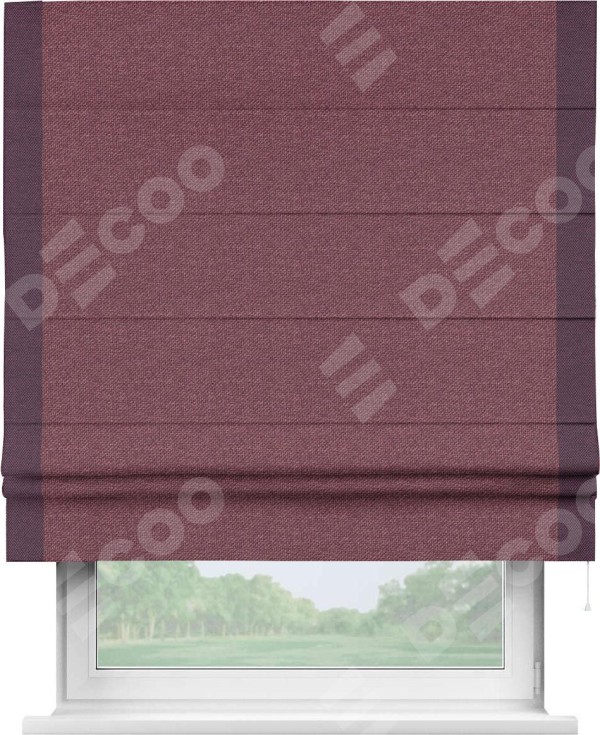 Римская штора «Кортин» с кантом Стрим Дуо, для проема, ткань лён димаут, марсала