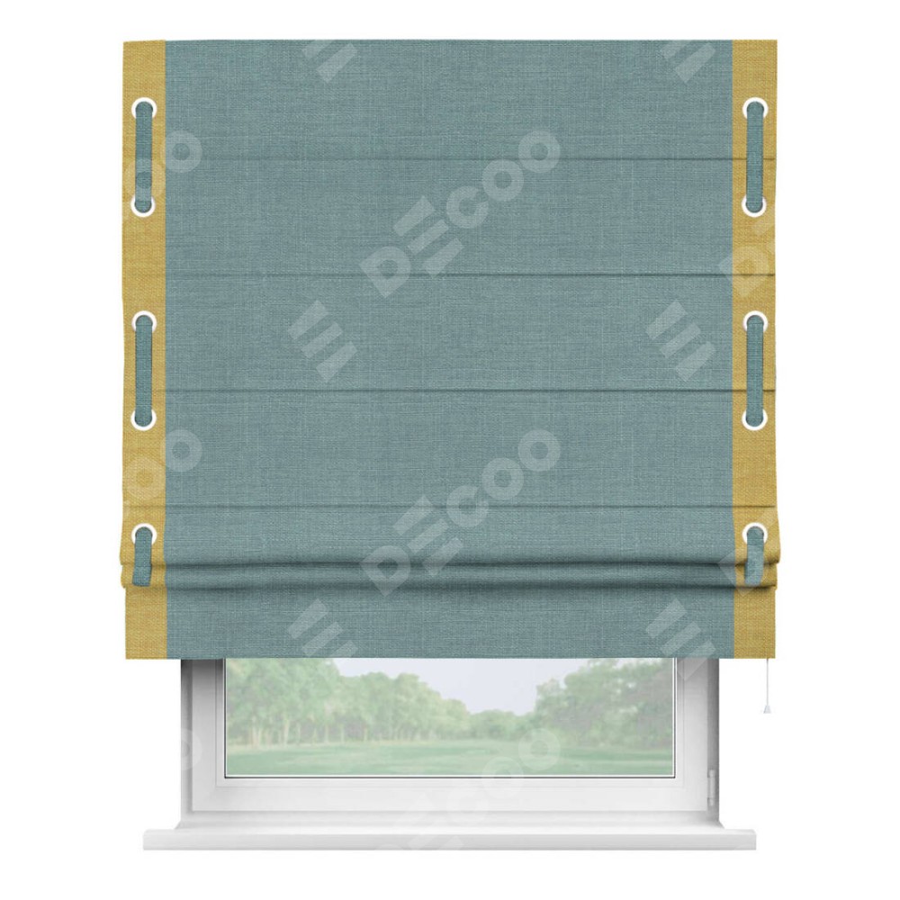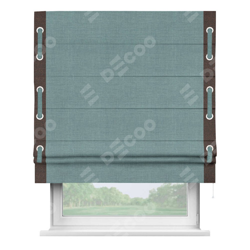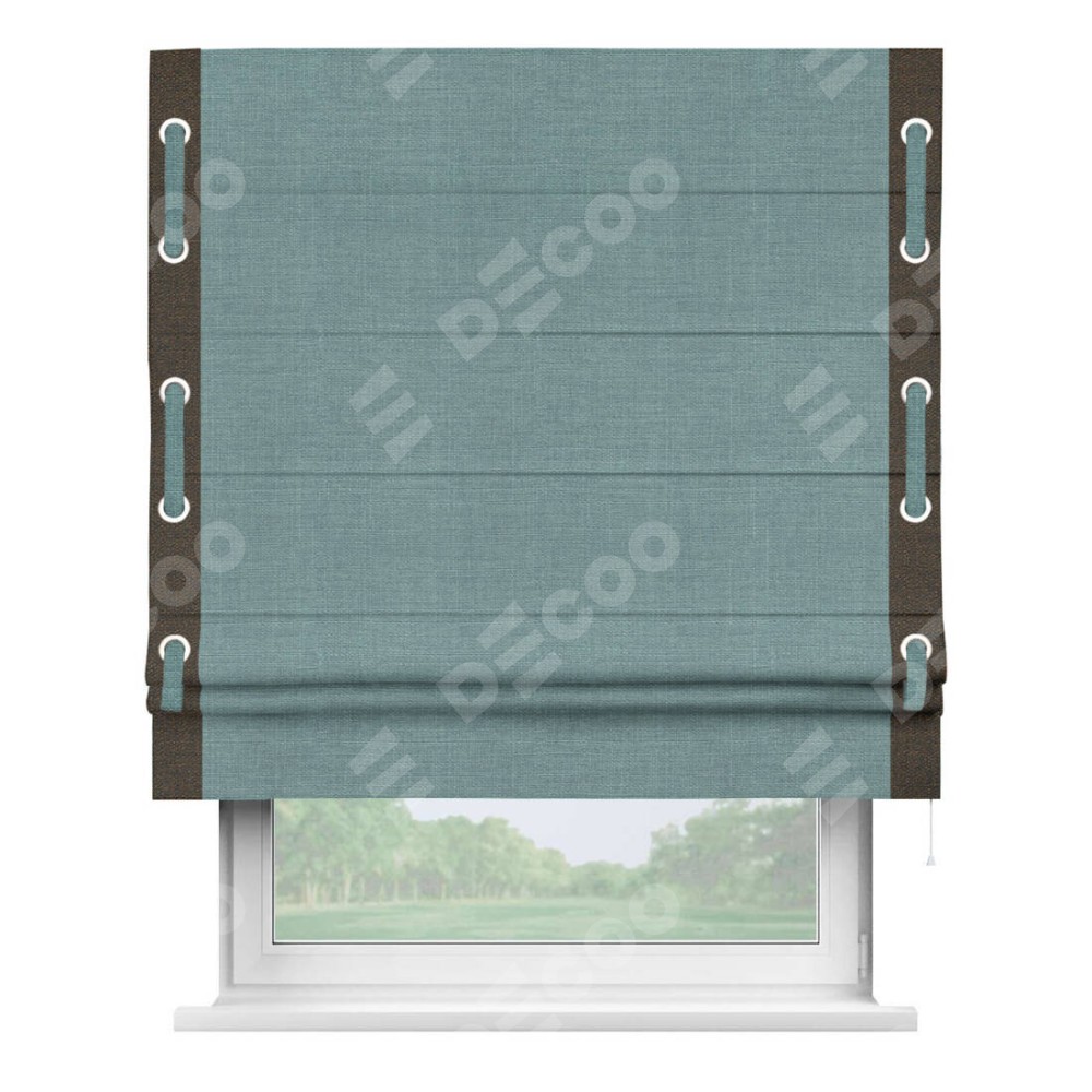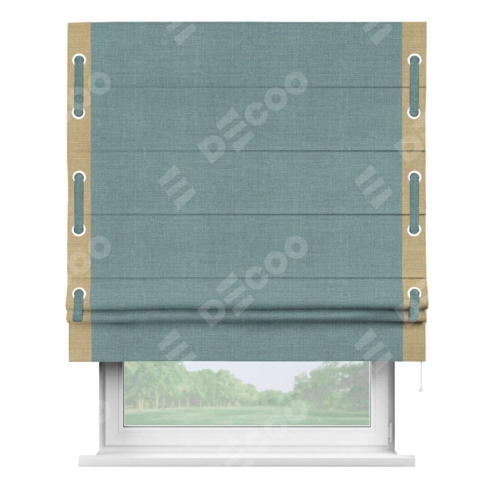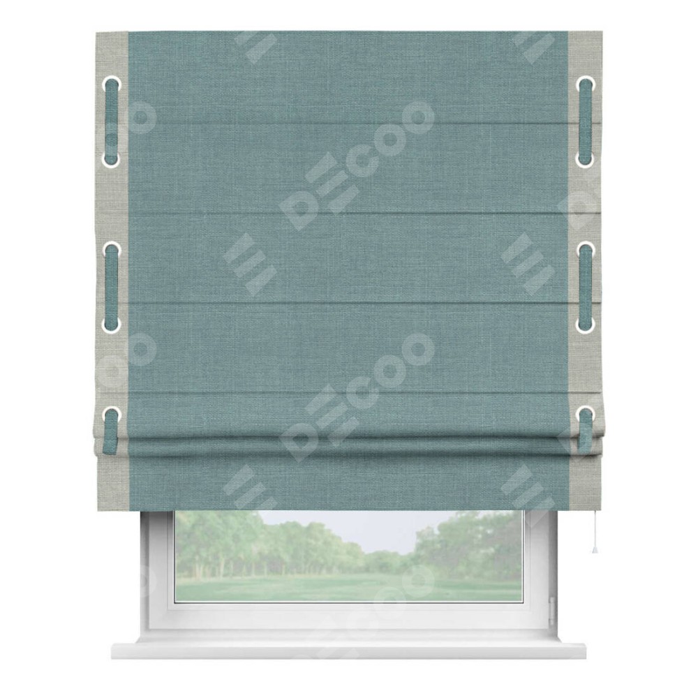 Римская штора «Кортин» с кантом Стрим Дуо, для проема, ткань лён, цвет голубой