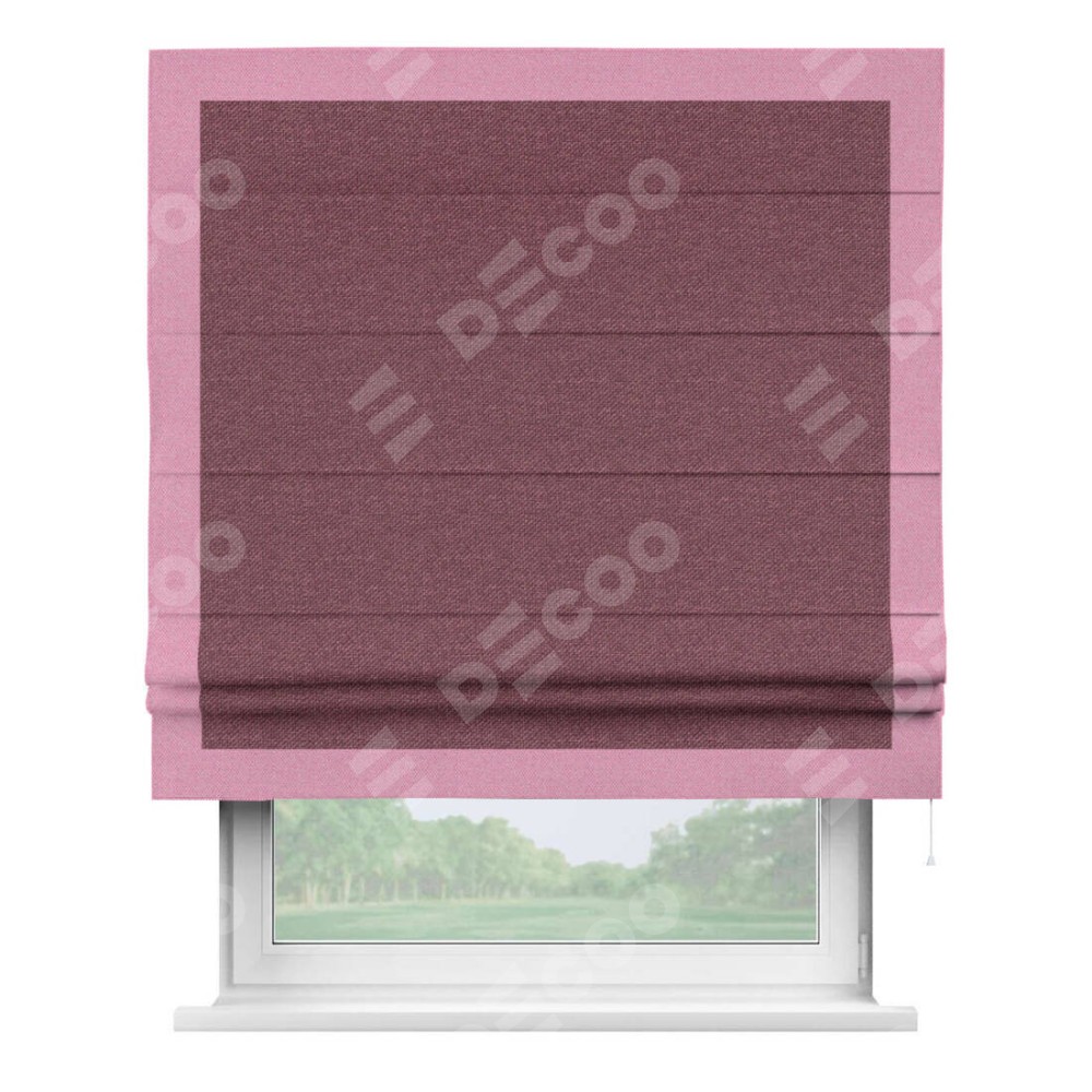 Римская штора «Кортин» с кантом Чесс, для проема, ткань лён димаут, марсала