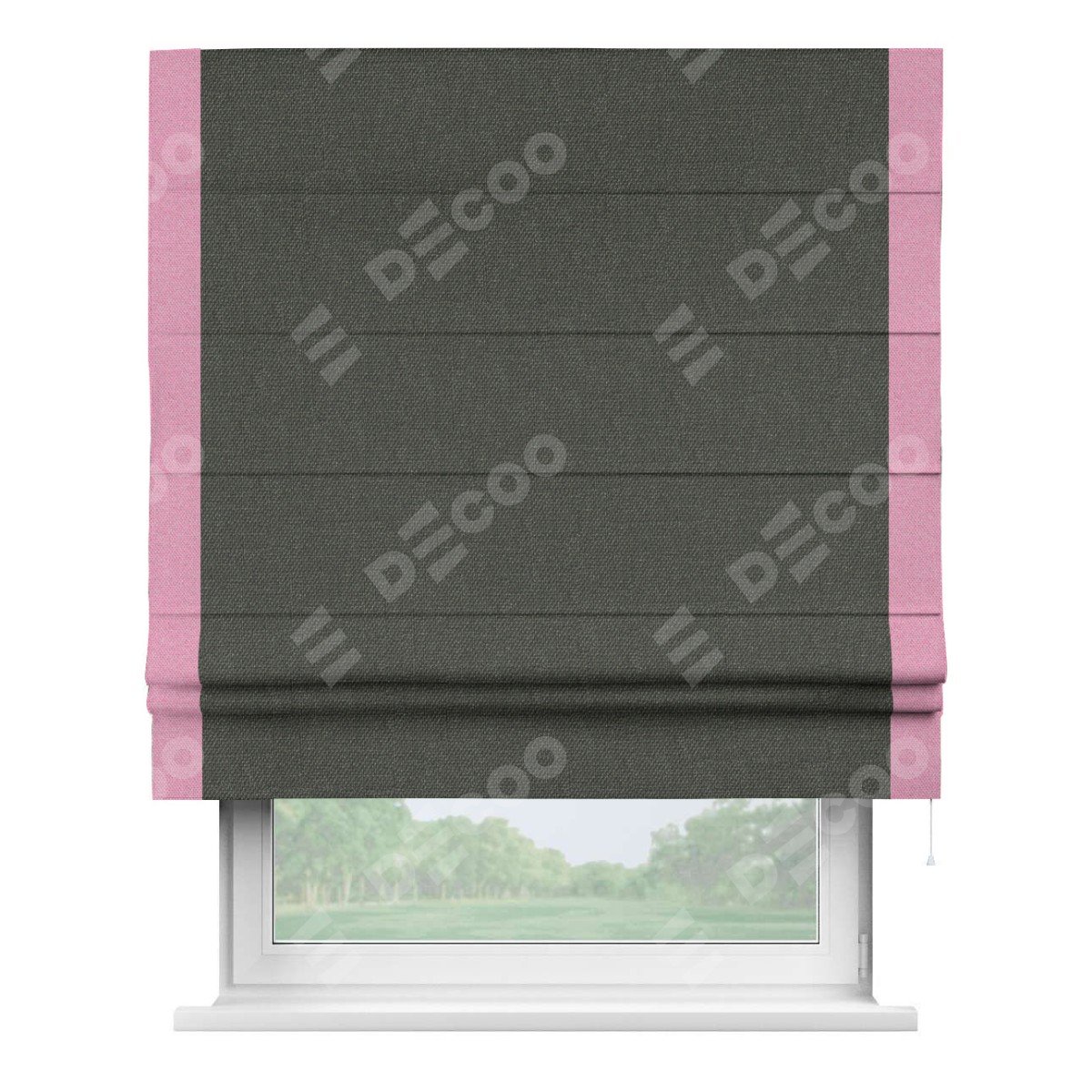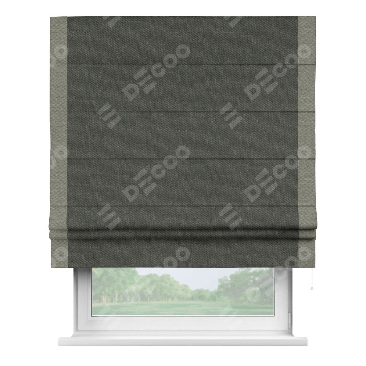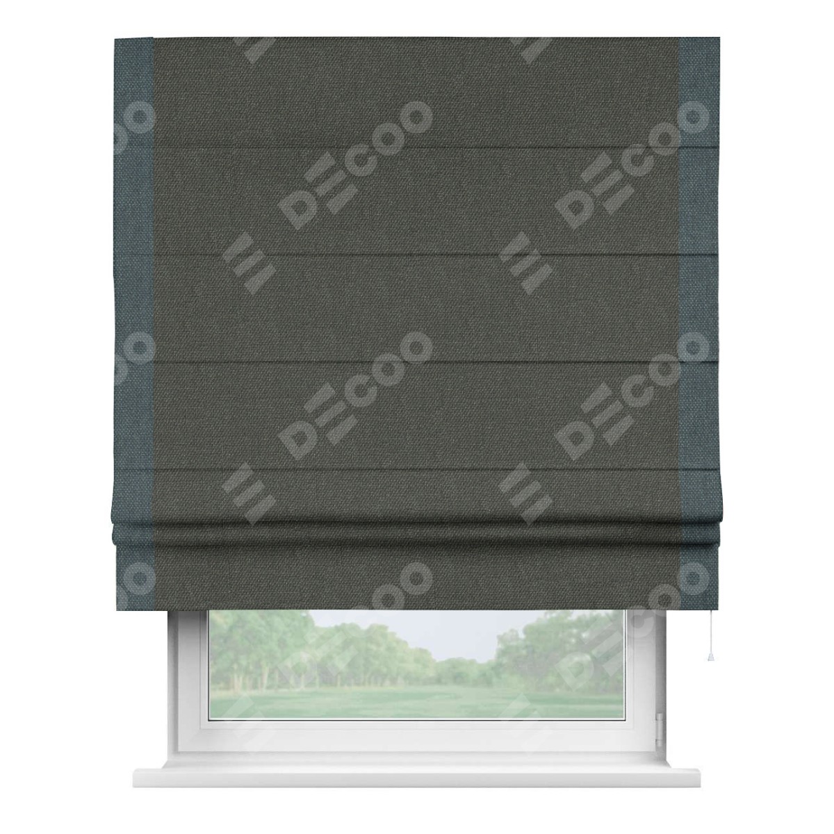 Римская штора «Кортин» с кантом Стрим Дуо, для проема, ткань лён димаут, графитово-серый