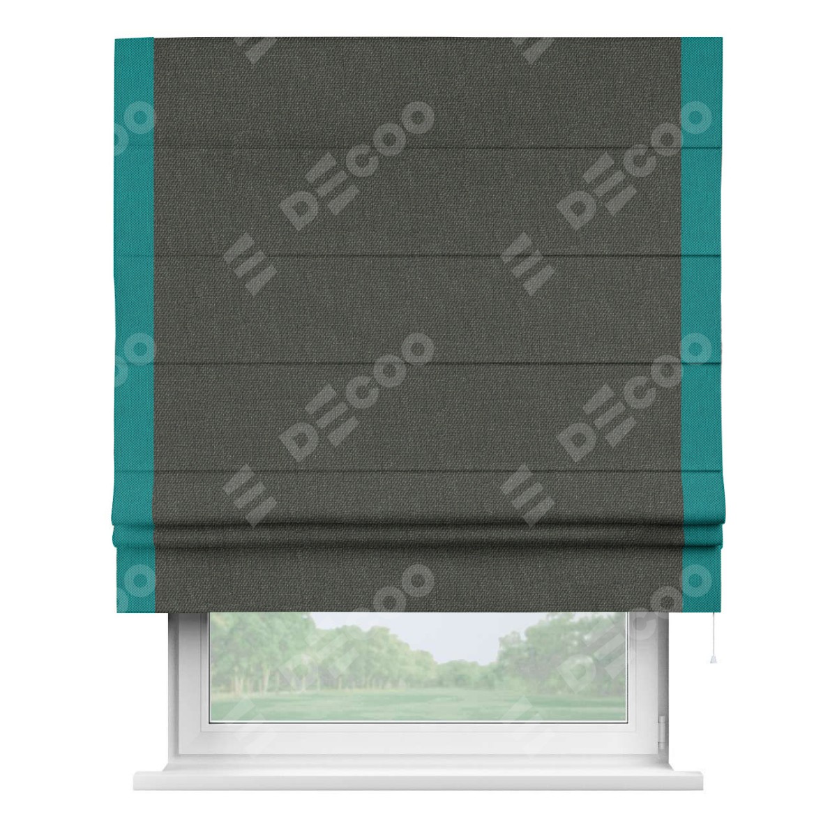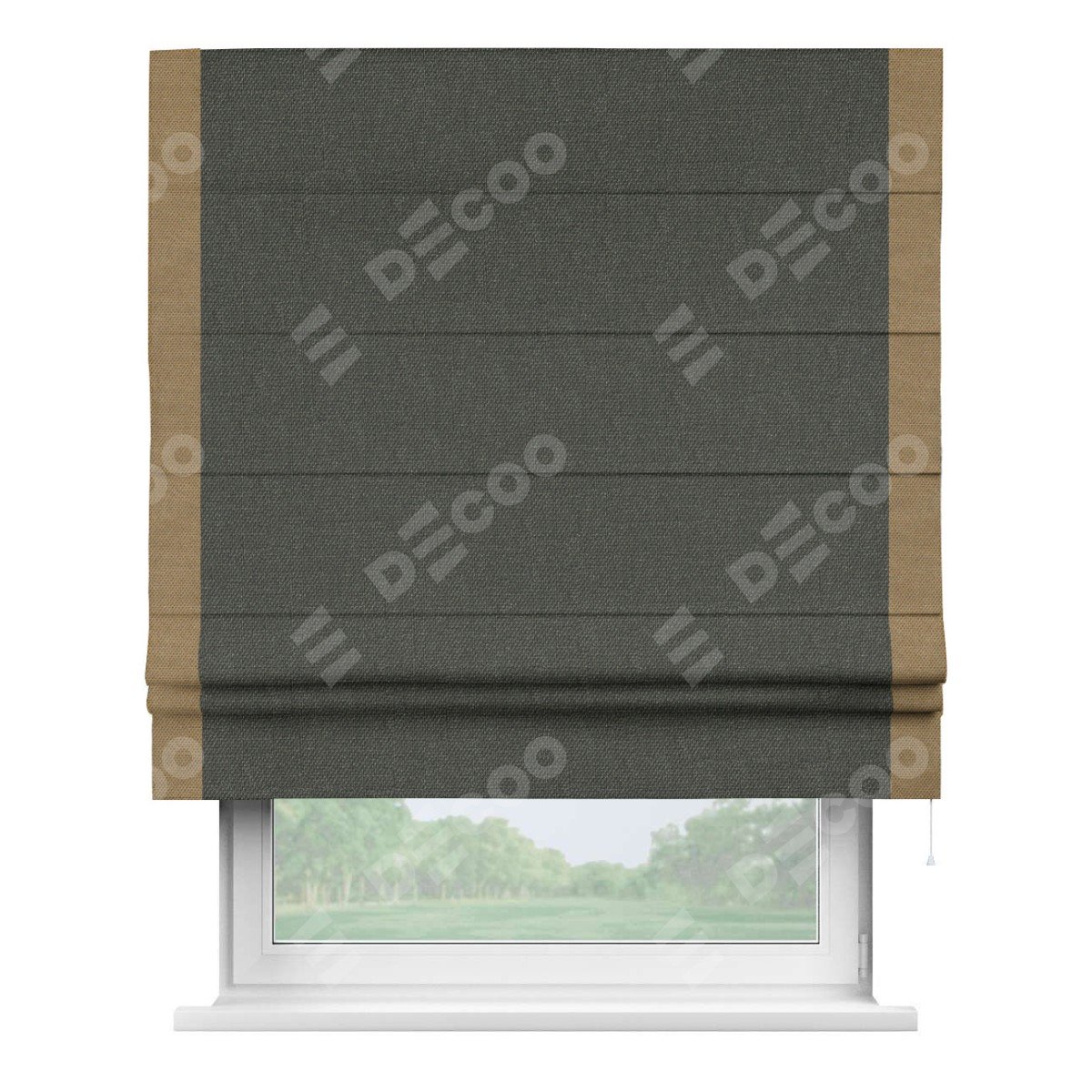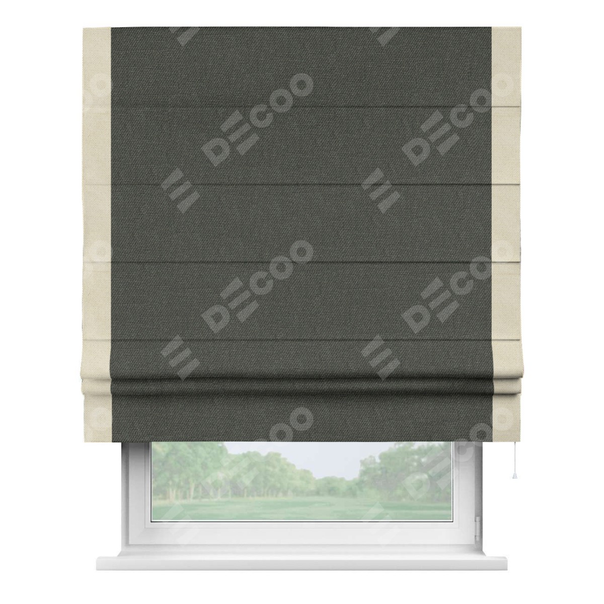 Римская штора «Кортин» с кантом Стрим Дуо, для проема, ткань лён димаут, графитово-серый