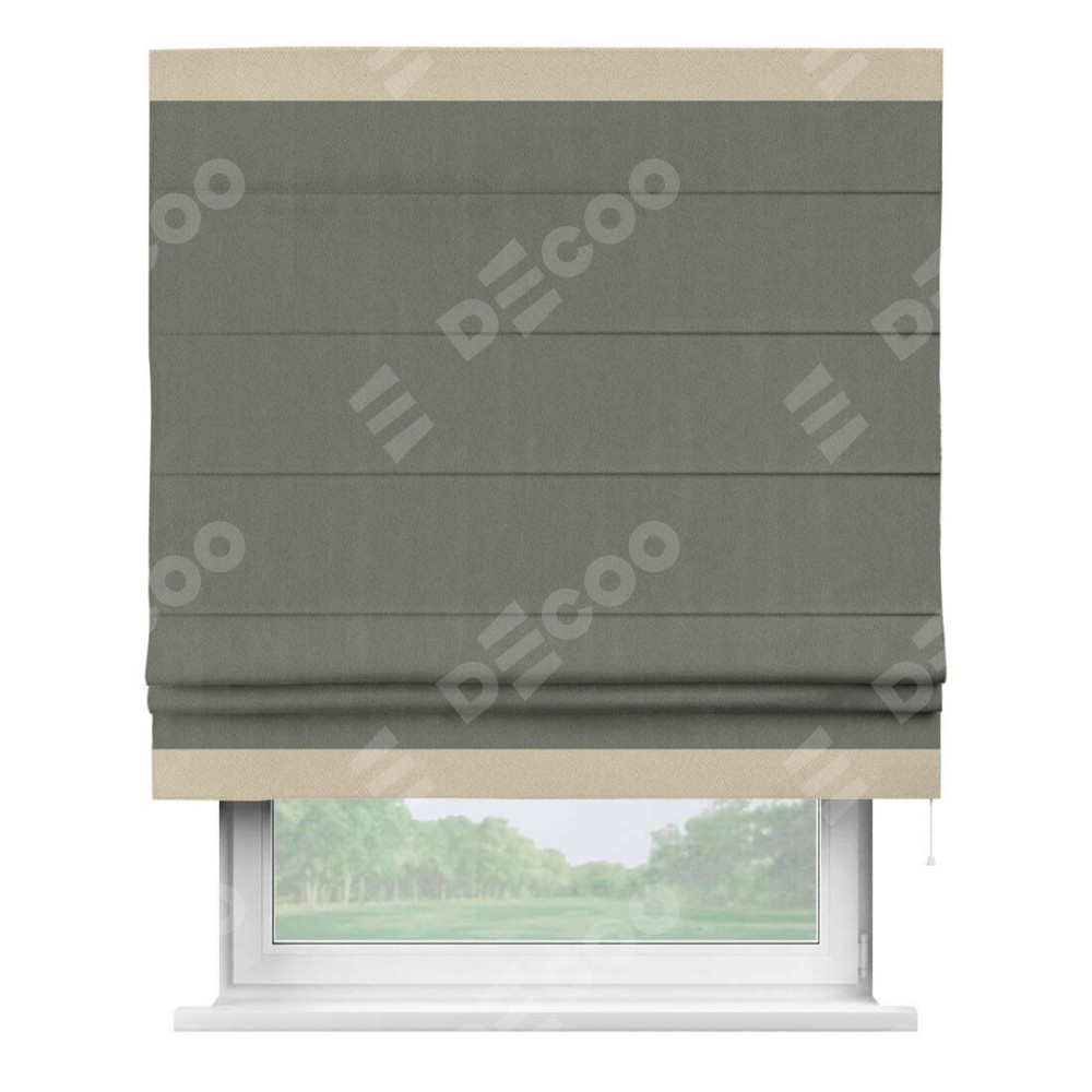 Римская штора «Кортин» с кантом Горизонт, для проема, ткань блэкаут однотонный тёмно-серый